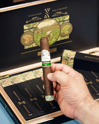 This medium bodied cigar has a savory complexity that is underscored by a delicious sweetness. Its muscular yet smooth Ecuadorian Habano maduro wrapper sheaths a Honduran binder and filler. Once rolled, each cigar is nested in a wooden coffin to protect the cigar’s delicate wrapper and help preserve its delicious flavors and aroma. The cigars are handmade at the Oscar Valladares Tobacco & Co. factory in Honduras. The Santiago Valladares Habano is a limited edition cigar. Only 2,000 boxes of 10 cigars per box were made. Order yours today!