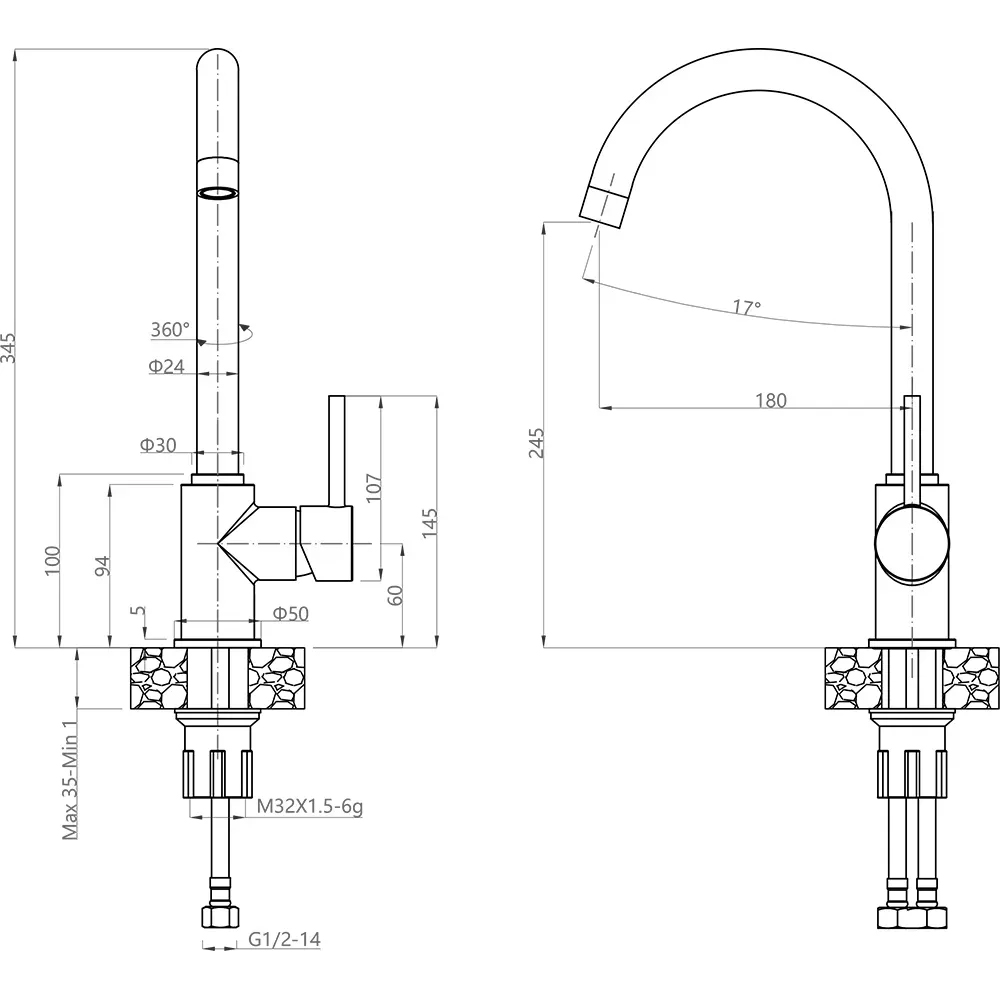• Высота излива 245 мм