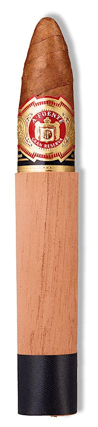 Lots of oaky, cedary character comes through on this dark, streaky belicoso. Hints of molasses and a bit of black pepper emerge as well, though the finish is a bit soapy.