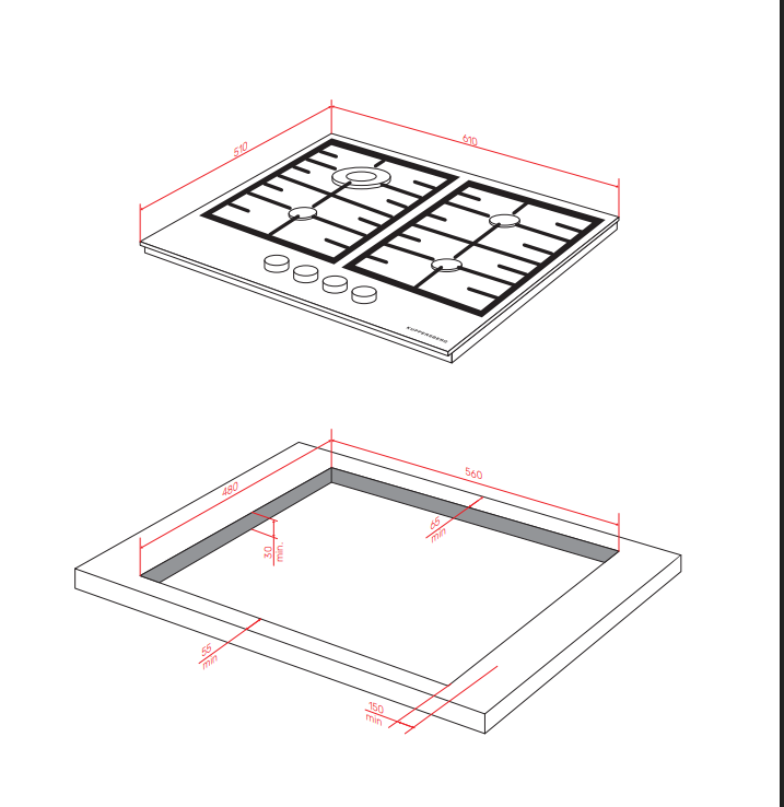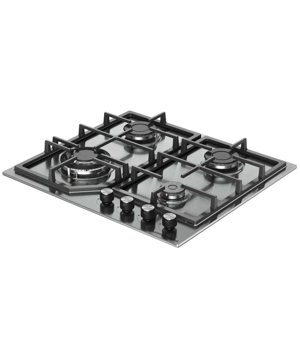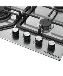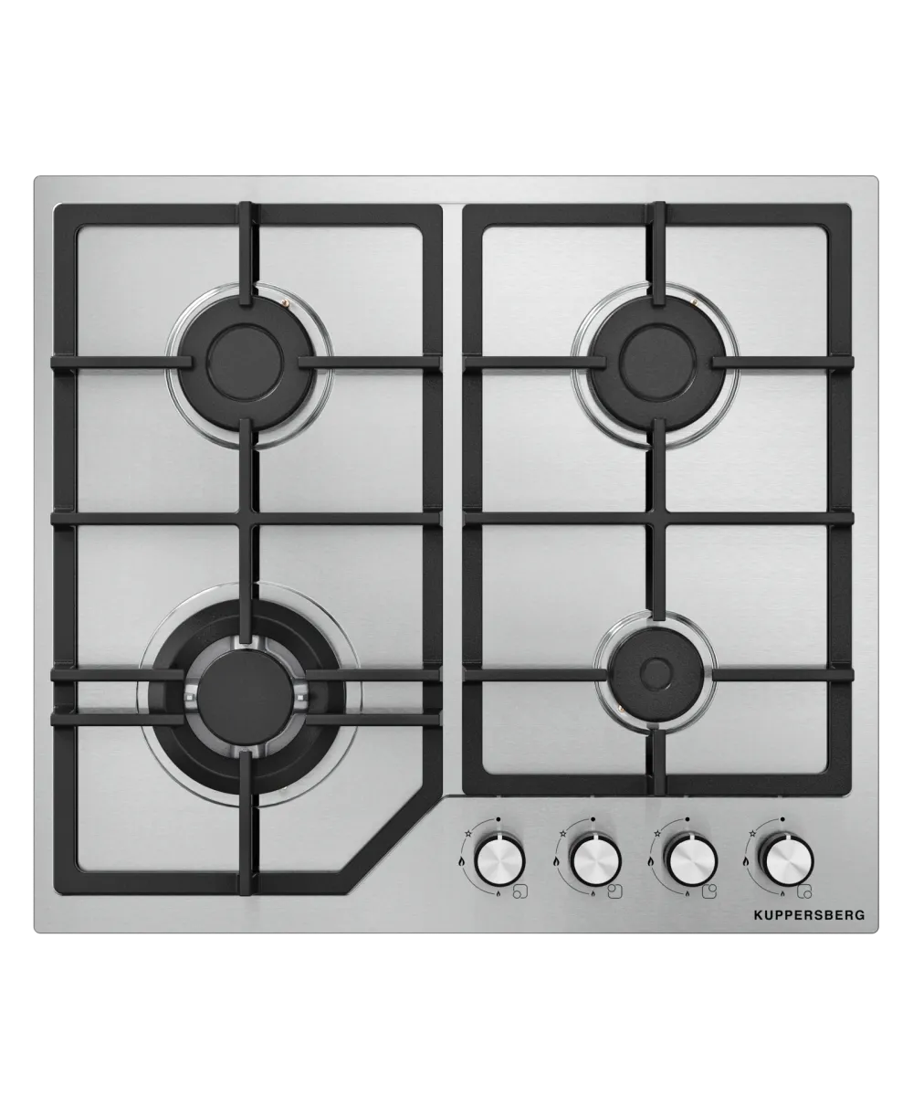 Варочная поверхность Kuppersberg/ Варочная поверхность Kuppersberg, газовая, High-Tech, 61 см, автоматический электроподжиг, газ-контроль, механическое управление, конфорки REMAY, цвет нержавеющая сталь, цвет фурнитуры черный/нержавеющая сталь