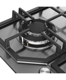 Чугунные решётки обеспечивают надёжную фиксацию посуды различных размеров. Наличие конфорки WOK с тройным кольцом пламени позволяет готовить в посуде с нестандартным дном.