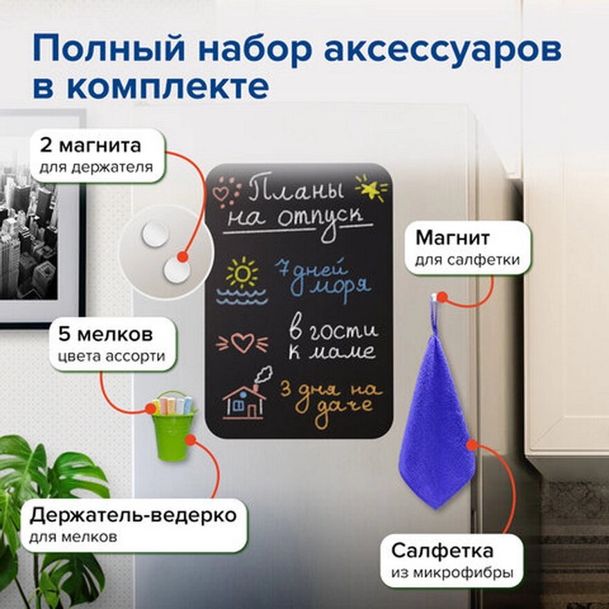 Доска на холодильник магнитно-меловая 42х30 см с мелками, магнитом и салфеткой, BRAUBERG
