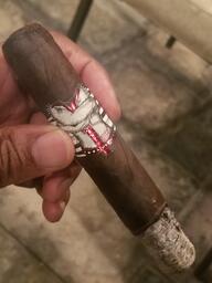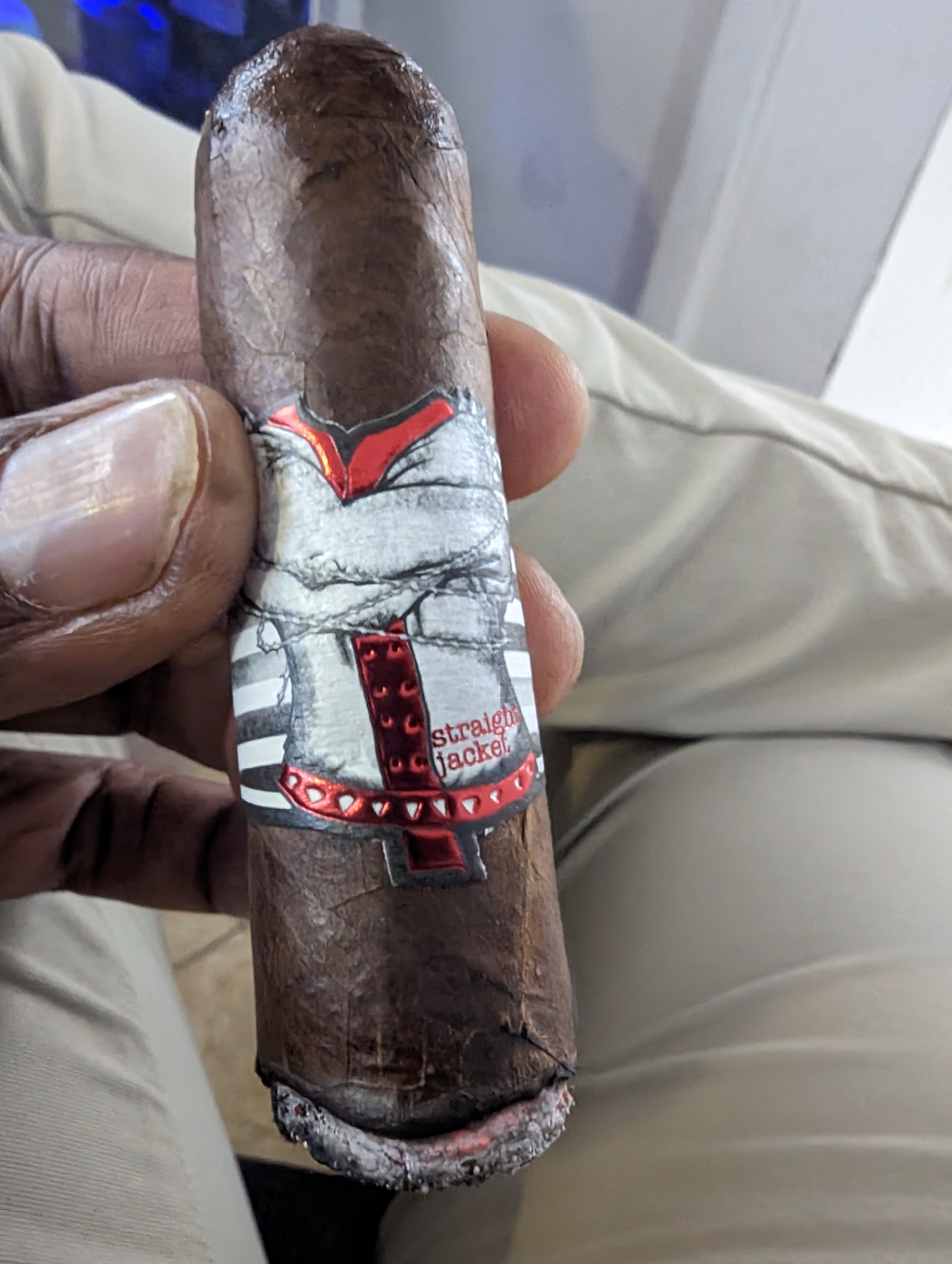 Noticeable notes of pepper, spice, earth and leather highlight this full-strength cigar’s flavor profile. It is a Nicaraguan puro that sports a dark chocolatey maduro wrapper. Handmade in Nicaragua, the blend for the Asylum Straight Jacket Toro Gordo was developed by Tom Lazuka and Christian Eiroa and distributed by Fabricas Unidas.