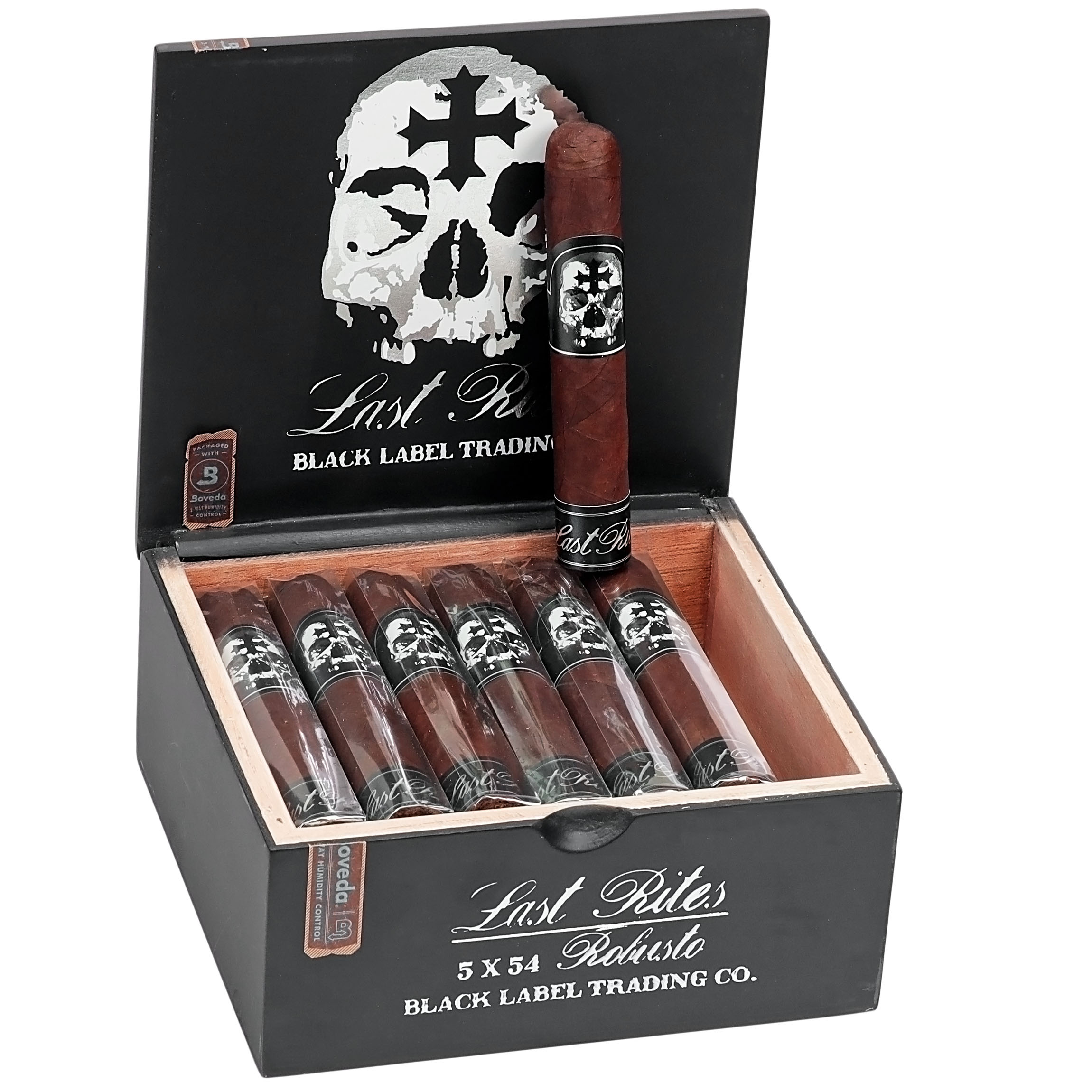 The Black Label Last Rites Robusto by Oveja Negra is a 5 inch by 54 ring gauge stick with an Ecuador Habano Maduro wrapper, a binder from Honduras, and filler tobaccos from Ecuador and Honduras. Medium to full bodied strength, with notes of leather, wood, and white pepper. Made in Nicaragua.