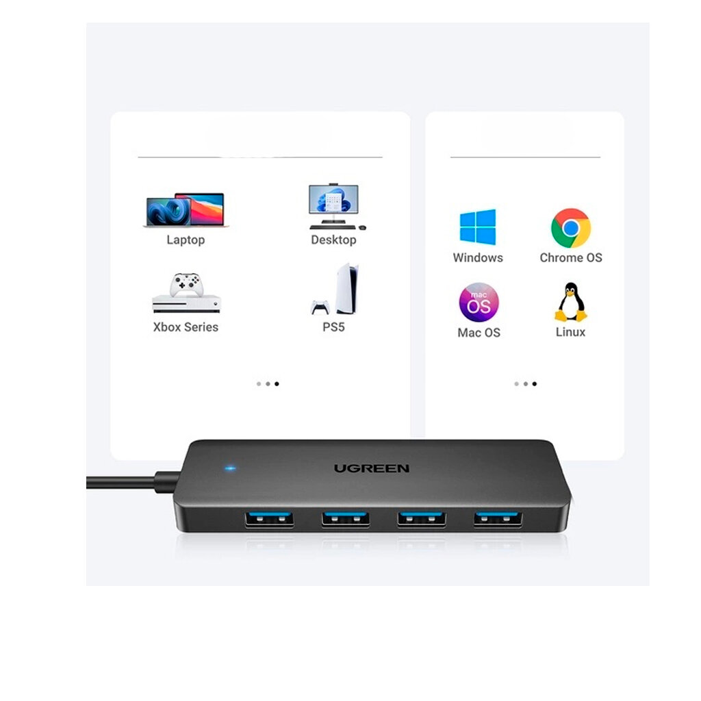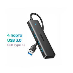 Хаб UGREEN CM219 (35574) 4-Port USB 3.0 Hub with USB-C power port 1m Black