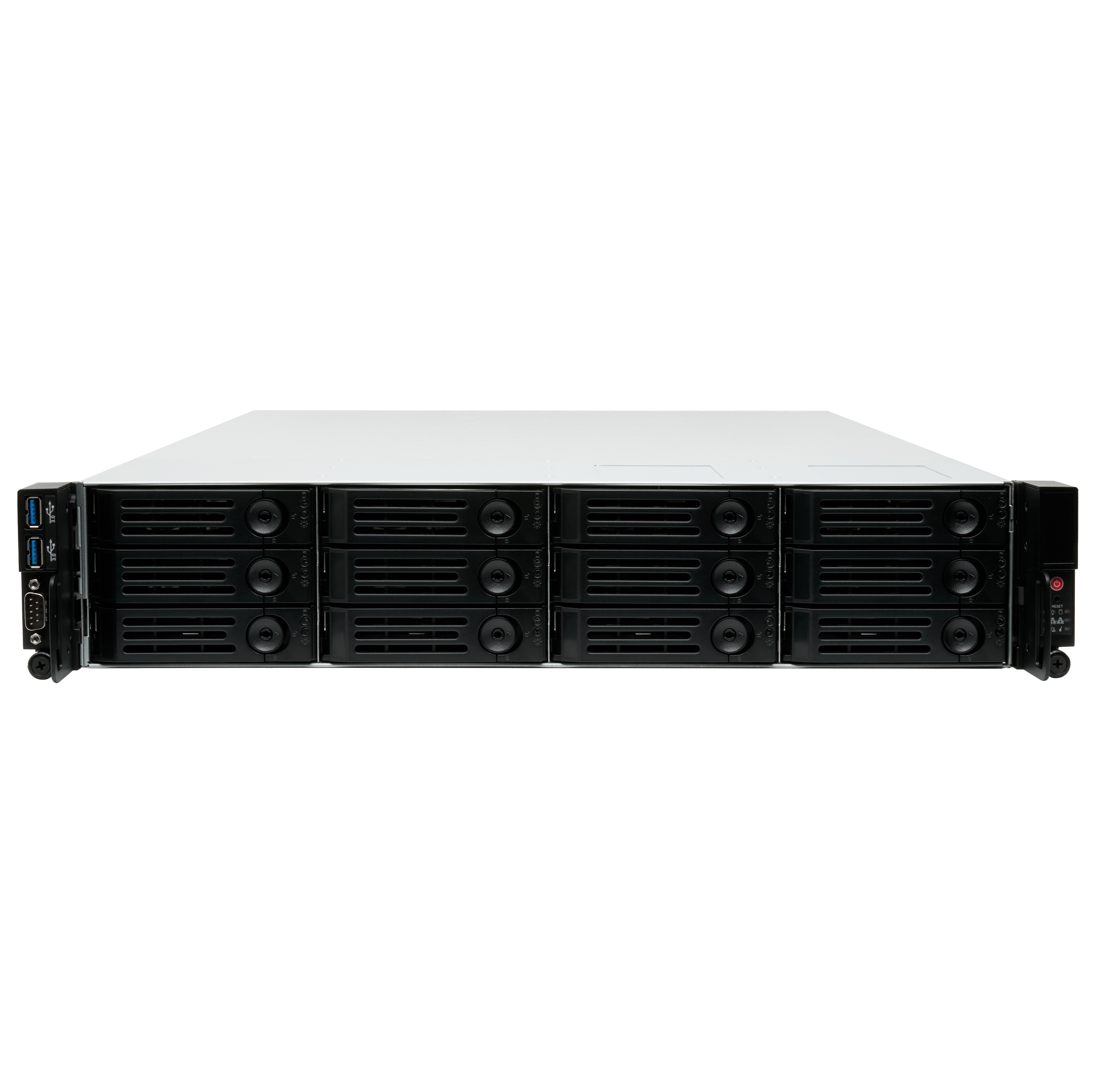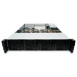 Корпус оснащён 12 лотками для 3,5-дюймовых жестких дисков. Это позволяет создать большой объём хранилища и легко управлять накопителями благодаря удобным сменным лоткам.