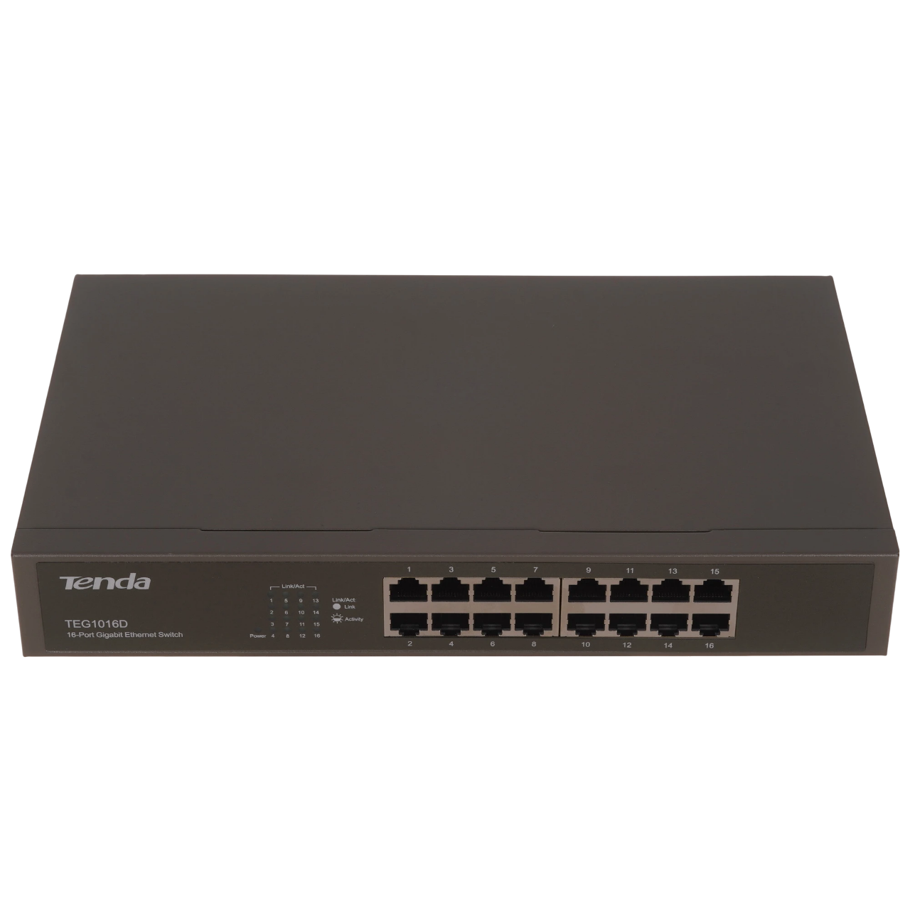 Коммутатор Tenda TEG1016D — это эффективное и надёжное сетевое устройство с 16 гигабитными портами, предназначенное для организации высокоскоростной локальной сети в офисе или дома. Этот коммутатор обеспечивает стабильную передачу данных и высокую производительность при работе с большими объёмами трафика.