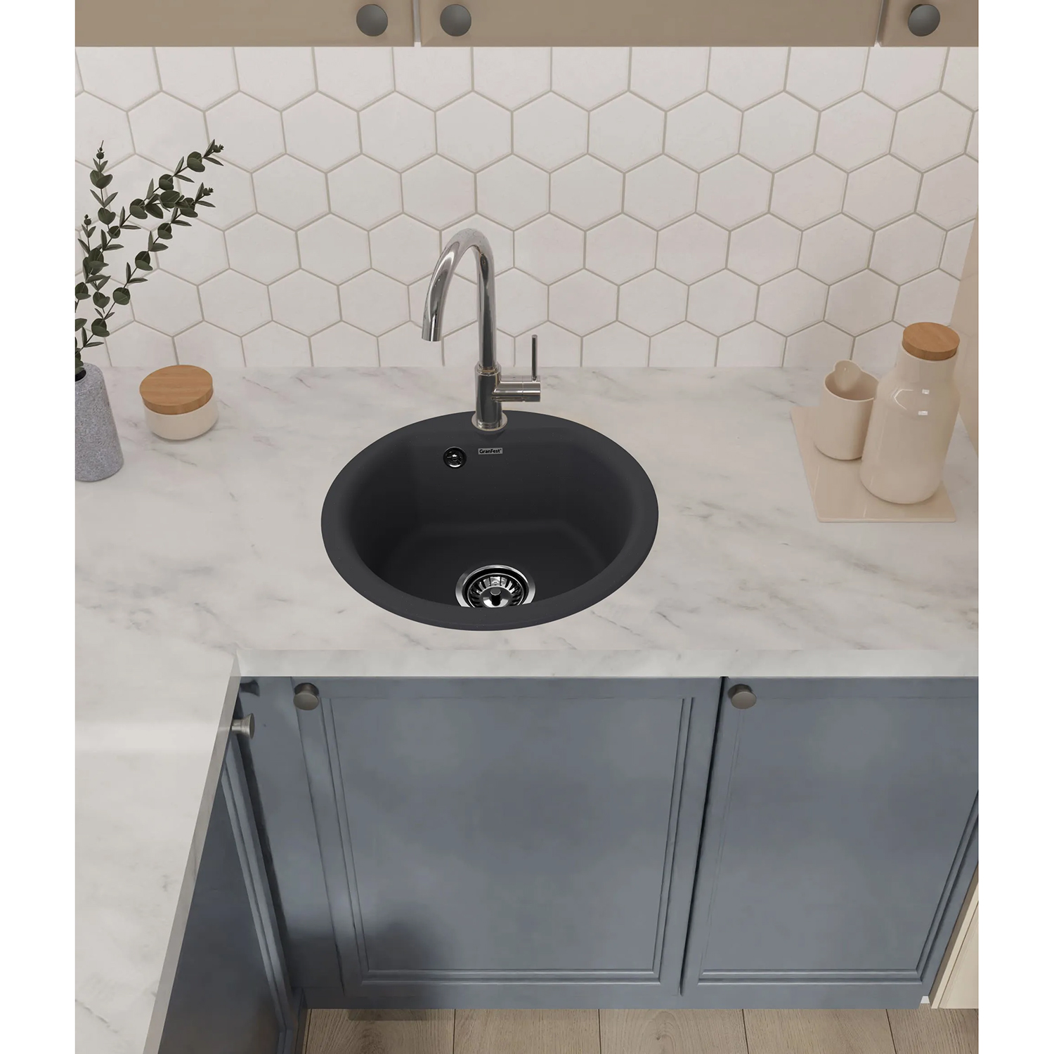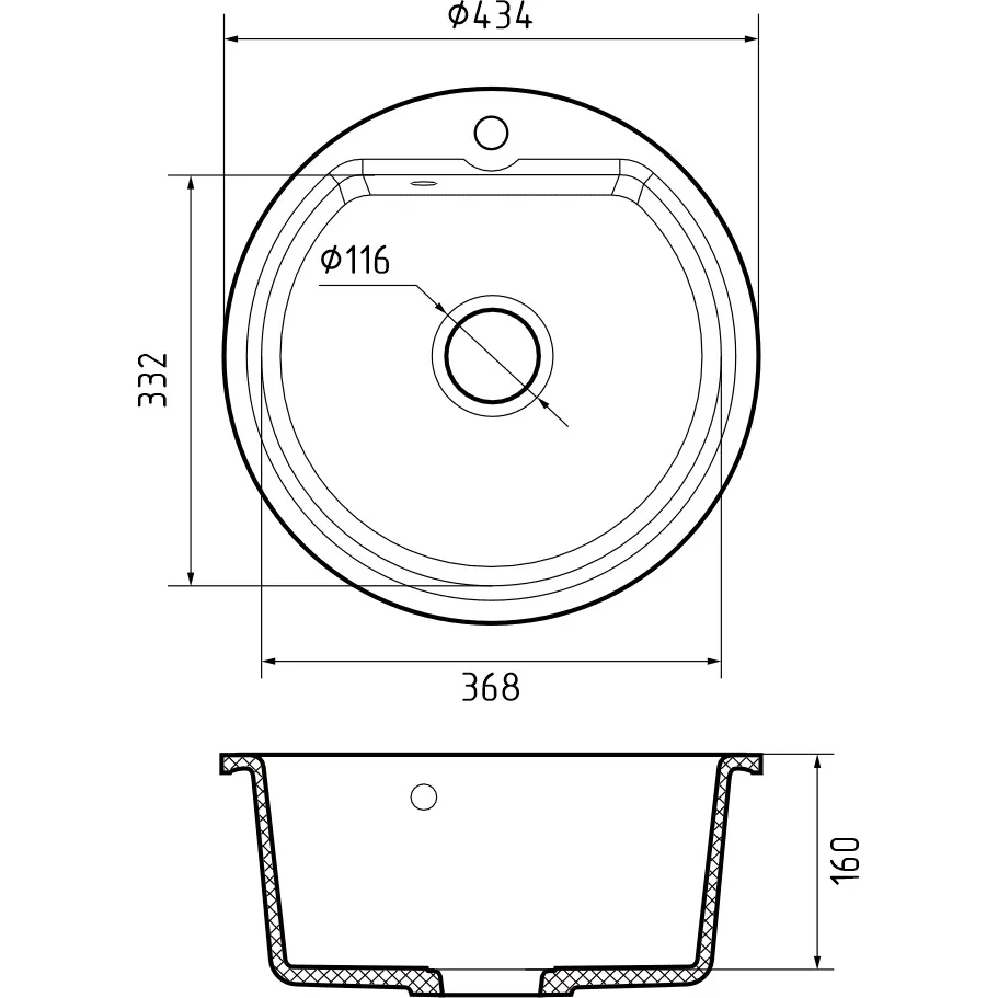 435 black 1 чаша 368*332*160 мм, монтаж: врезной, материал: мрамор, цвет черный