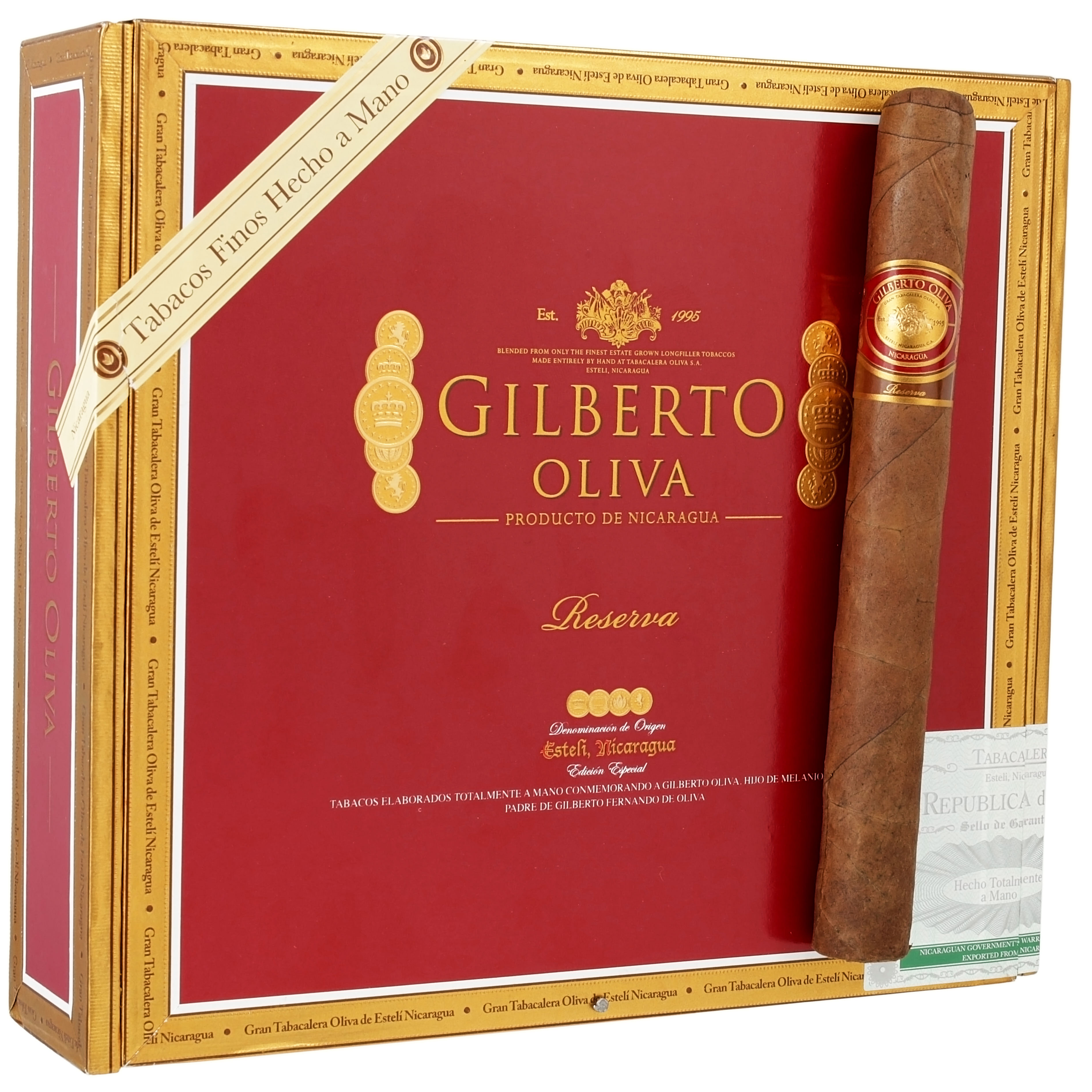 A medium to full-bodied cigar with a savory complexity underscored by spicy and sweetness notes. Its delicious Sumatra wrapper covers an Ecuadorian binder and a Nicaraguan filler. Handmade in Nicaragua. A box worthy cigar, the Gilberto Oliva Reserva will appeal to cigar lovers who are looking for a bolder and flavorful smoke.