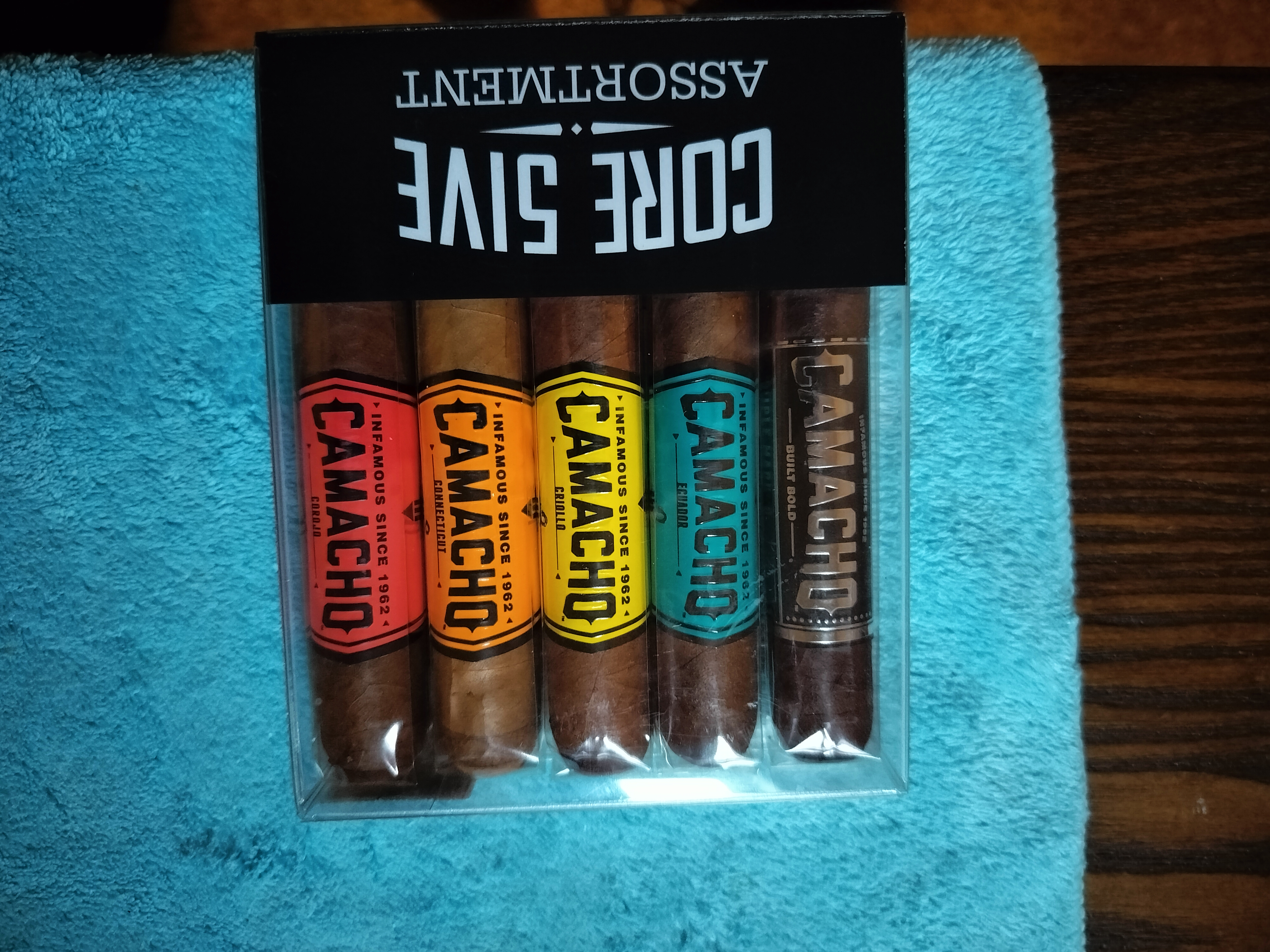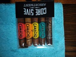 This specially arranged sampler contains five of Camacho's boldest smokes. Each pack comes with one (1) each robusto-sized (5" * 50):