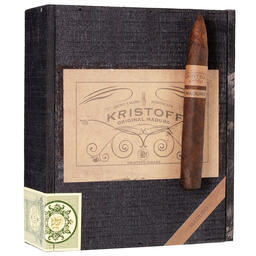 This medium bodied cigar offers delicious notes of coffee, cocoa, spice and dark chocolate. Its Brazilian Maduro wrapper covers a Cuban Seed Dominican binder, and Cuban Seed Dominican and Nicaraguan fillers. Handmade in the Dominican Republic, the Kristoff Maduro is capped with a pigtail at the head, and with its closed foot accentuates the cigar’s rustic look.