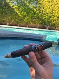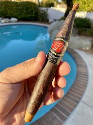 This medium to full bodied cigar has a spicy and chocolatey flavor profile. The blend consists of an Ecuadorian Sumatra-seed wrapper draped over a Dominican Republic binder and filler. The La Flor Dominicana TCFKA “M” Oscuro is handmade in the Dominican Republic. In case you’re wondering, “TCFKA “M” stands for “The Cigar Formally Known as “M.”