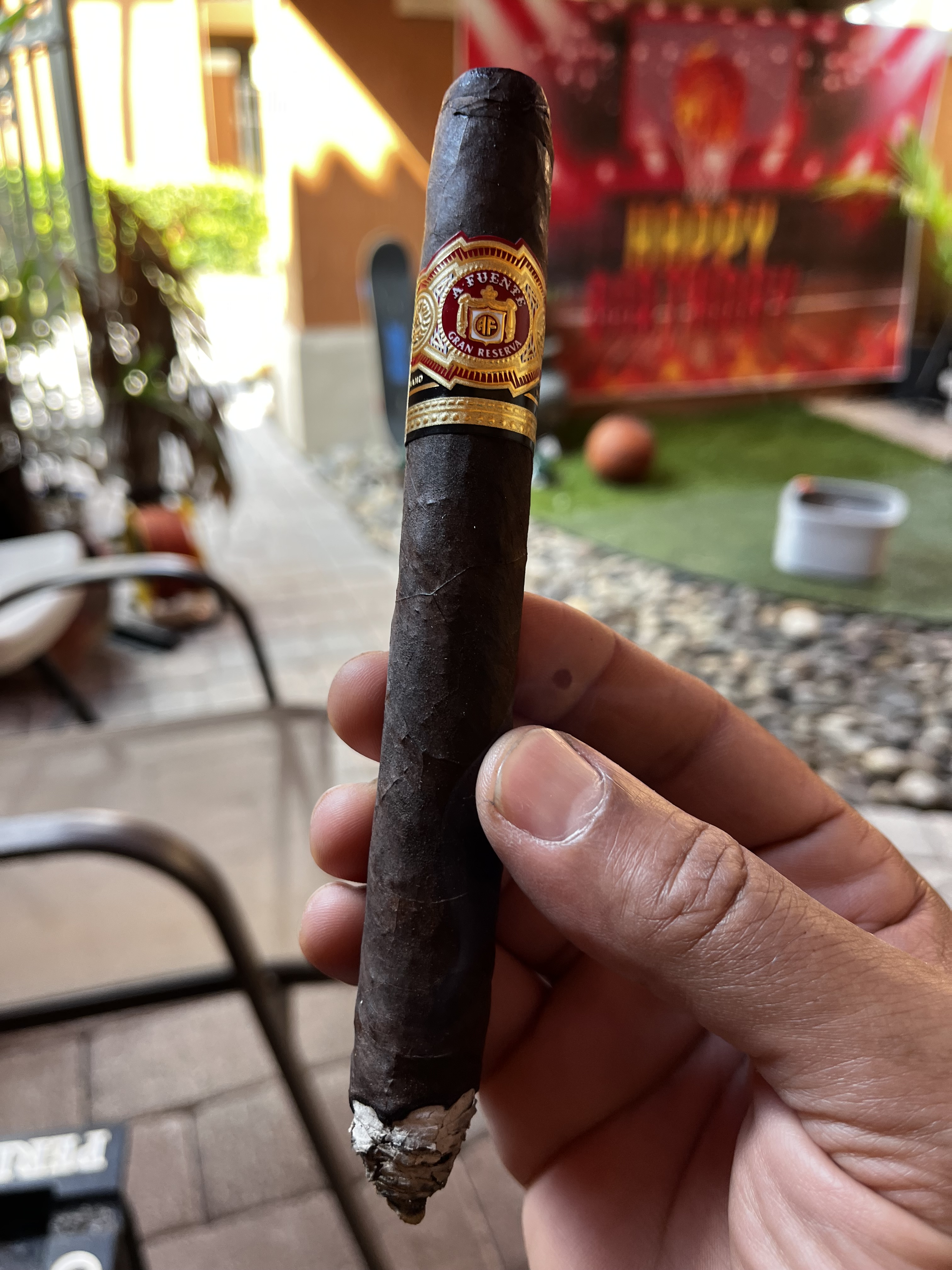 A rich, flavorful cigar with floral, vanilla notes and an underlying sweetness. Its premium Dominican binder and filler are covered by a savory, dark chocolatey USA Connecticut Broadleaf wrapper. Arturo Fuente Jr. was fascinated by the perfecto shape since childhood. It is why he dedicated this eye-catching shape to the Hemingway line. The Arturo Fuente Hemingway Untold Story Maduro is handmade in the Dominican Republic.