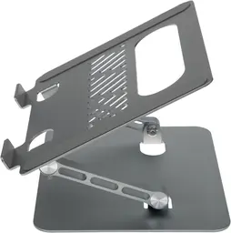 ОписаниеМеталлическая подставка для ноутбука с прорезиненными вставками, которые препятствуют скатыванию ноутбука. Широкий диапазон настройки высоты и угла наклона позволяет легко подобрать оптимальное положение для работы. Совместима с ноутбуками диагональю до 17".
