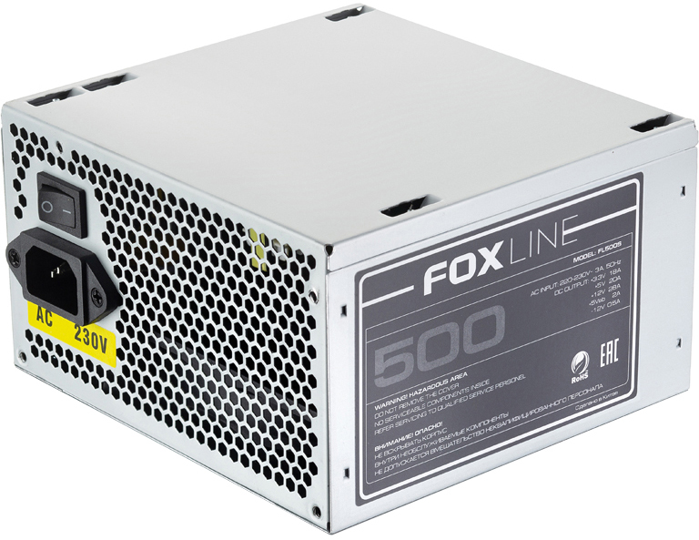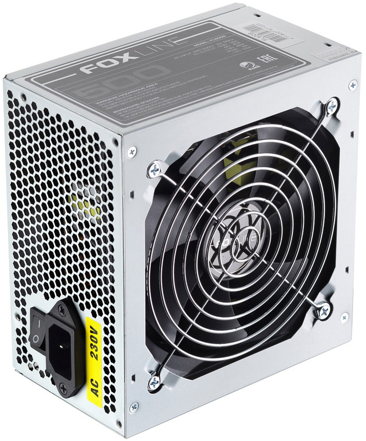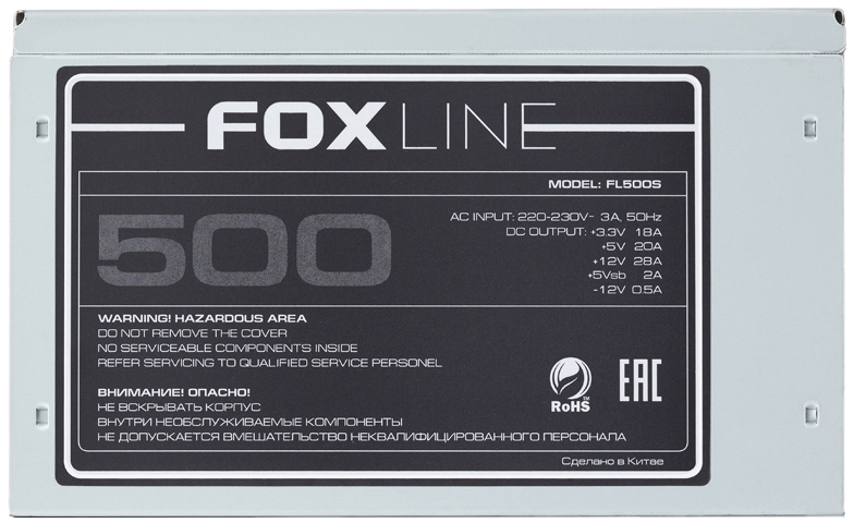 Блок питания 500Вт/ Power Supply Foxline, 500W, ATX, NOPFC, 120FAN, 3xSATA, 2xPATA, 1xFDD, 1xPCI-E, 24+4
