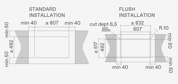 Встроенная вытяжка с 9 уровнями мощности обеспечивает эффективное удаление запахов и пар, создавая комфортную атмосферу на кухне. Режим рециркуляции позволяет использовать устройство даже без подключения к вентиляционной системе — фильтры очищают воздух, возвращая его обратно в помещение.