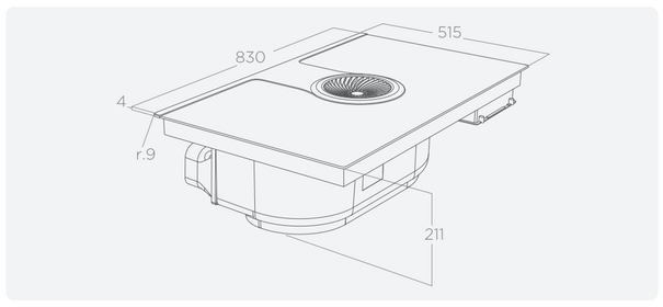 Варочная панель с вытяжкой ELICA/ Варочная панель с вытяжкой ELICA, индукционная, 83 см, 4 конфорки, слайдерное управление, Booster, индикация остаточного тепла, таймер, определение наличия посуды, пауза, функция Bridge, 9 уровней мощности вытяжки, рециркуляция, цвет черный