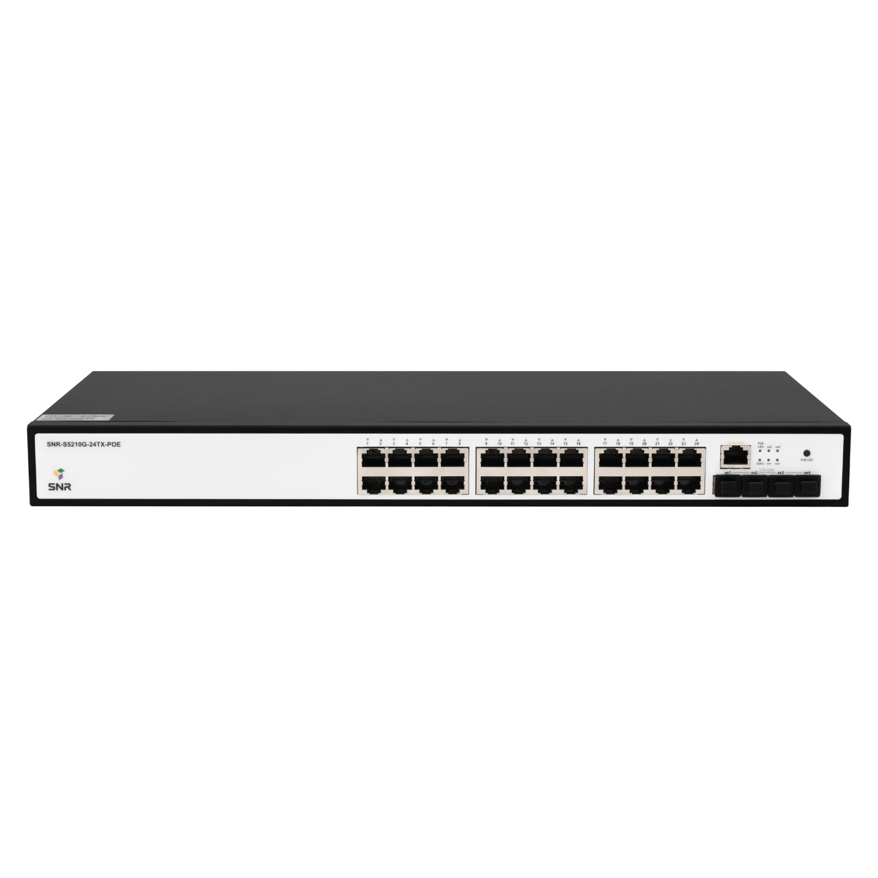 Управляемый PoE коммутатор уровня 2+ SNR-S5210G-24TX-POE- — это мощное и надёжное сетевое решение, объединяющее высокую производительность и функциональность подачи питания по Ethernet. Стильный металлический корпус легко вписывается в стандартные 19-дюймовые стойки.