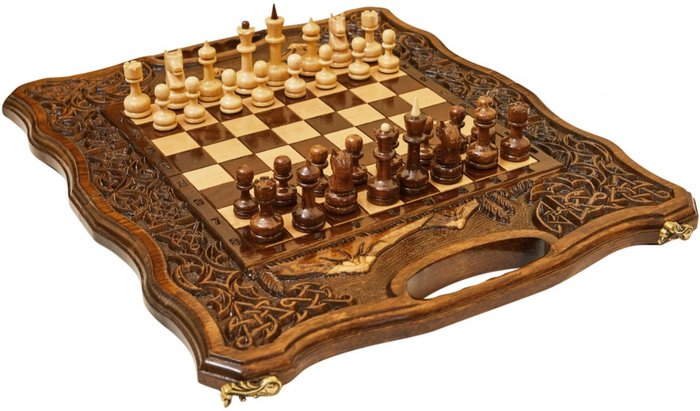 • Комплектация 32 фигуры, 32 фишки, 2 шестигранных кубика, доска, чехол