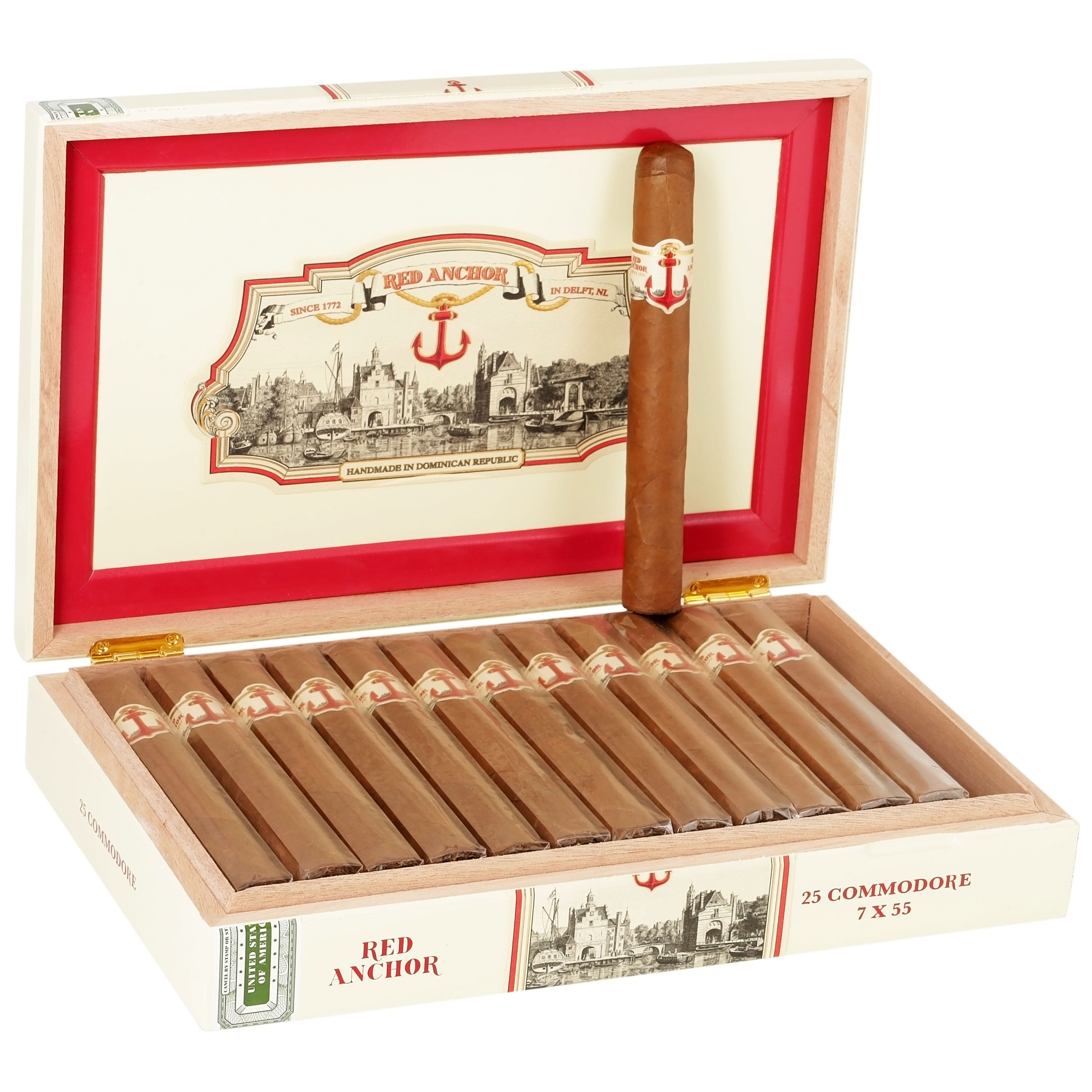 A potent and flavorful smoke that offers notes of cedar, espresso beans, cocoa, earth, and leather with a sweet maple and peppery retro-hale. Its Ecuadorian Habano maduro wrapper cloaks a Dominican Monte Plata binder (grown on farms owned by the Kelner Boutique Factory) and a filler composed of Dominican San Vincente, Dominican ’92, and USA Pennsylvania leaves. The Red Anchor uses carefully aged tobaccos, which provides a well-balanced smoking experience that will appeal to the traditional as well as the contemporary aficionado. The cigars are handmade in the Dominican Republic at the Kelner Boutique Factory for United Cigars.