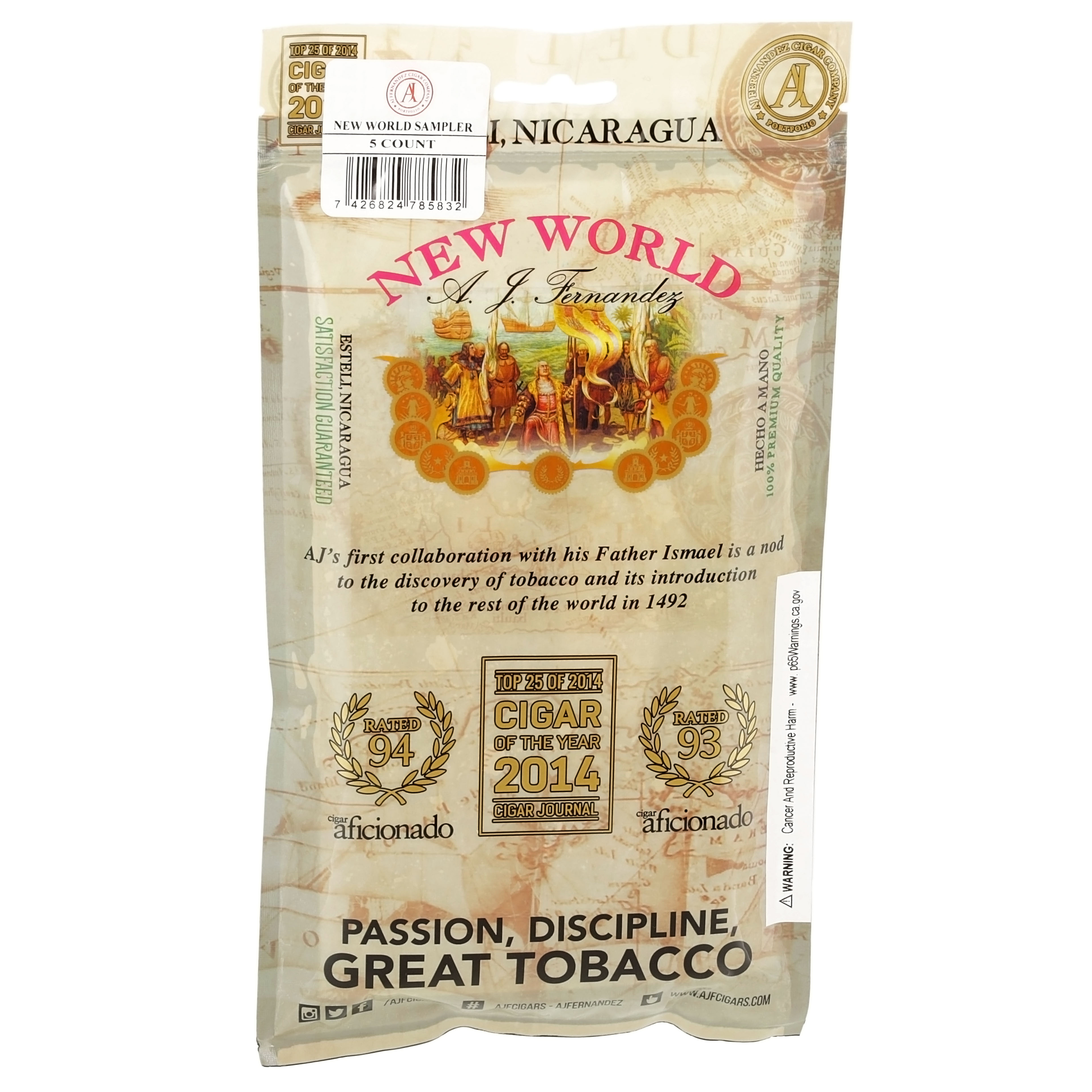 The New World cigar brand is a collaboration between master cigar crafters AJ Fernandez and Ismael, AJ’s father. The brand is dedicated to the discovery of tobacco and the New World. This carefully selected sampler comes with one (1) each: