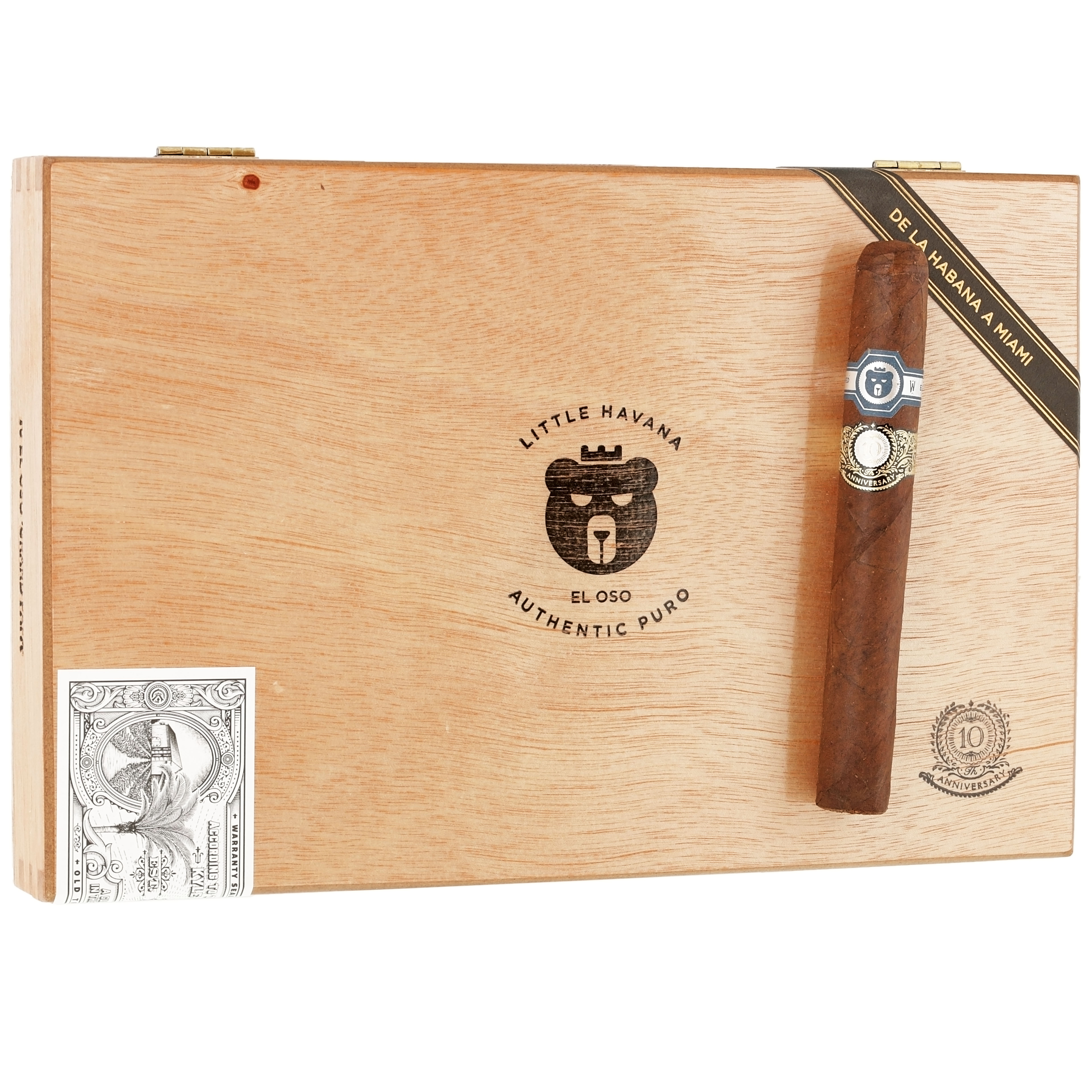 This medium to full-bodied smoke offers savory notes of baker’s spice, sweetness, coffee, and a rich earthiness. Its dark Ecuadorian Habano maduro wrapper cloaks a Nicaraguan binder and filler composed of Dominican and Nicaraguan leaves. The Warped El Oso "Grand Papa" 10th Anniversary cigar was handmade at the famed El Titan de Bronze cigar factory in the Little Havana district of Miami. This is a limited edition cigar. Only 1,500 boxes of 10 cigars per box were made. Order yours today!
