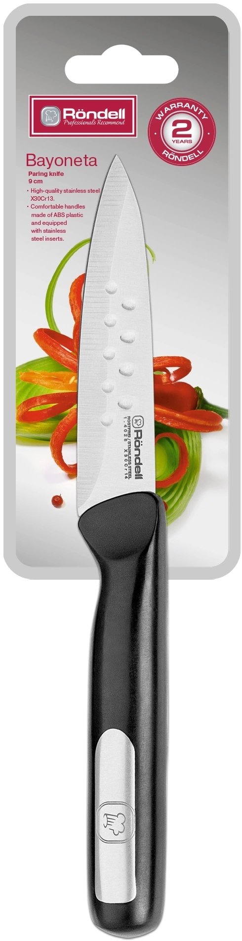Нож кухонный Rondell Bayoneta RD-1573 стальной универсальный для овощей лезв.90мм прямая заточка черный блистер