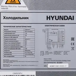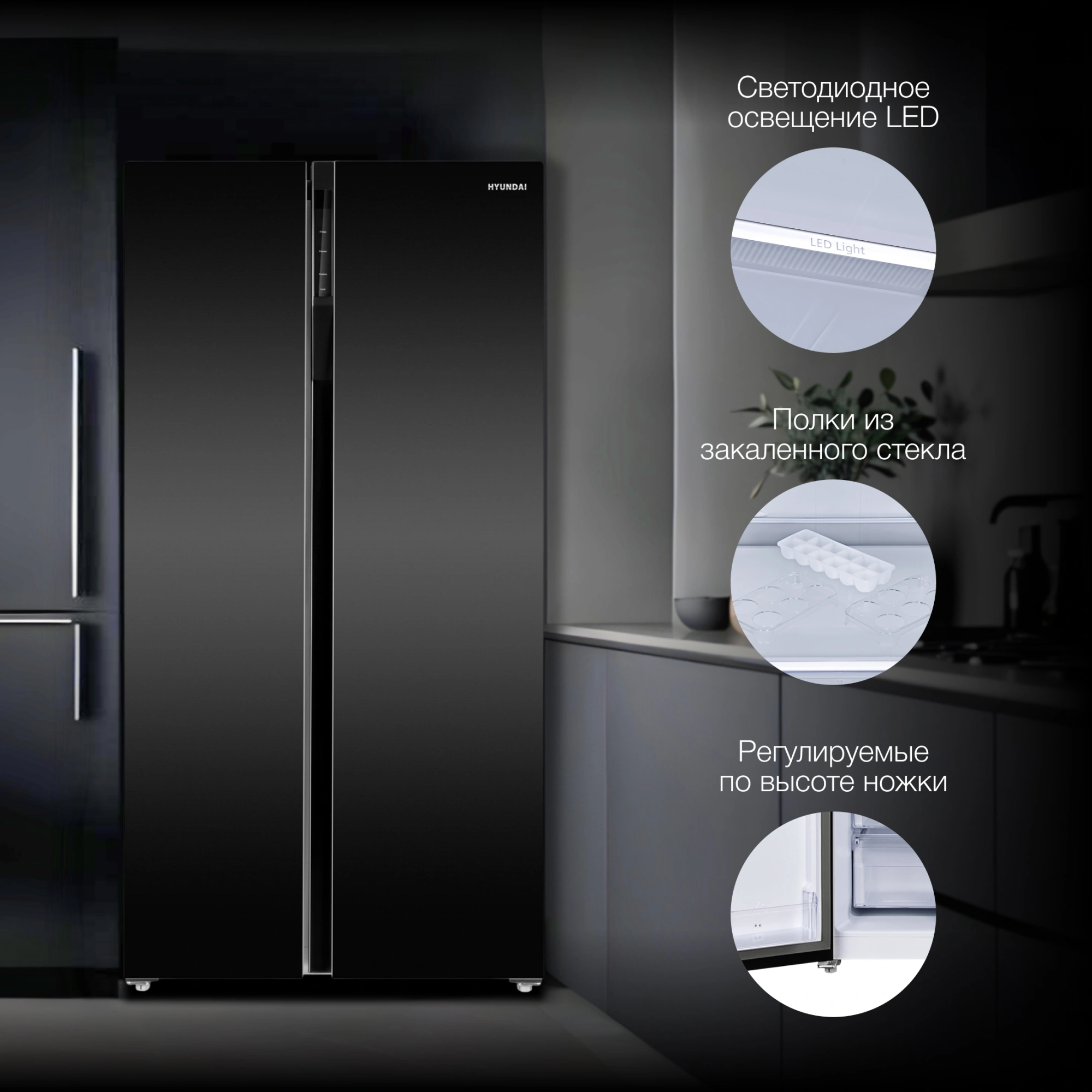 Холодильник Hyundai CS6503FV 2-хкамерн. черное стекло инвертер