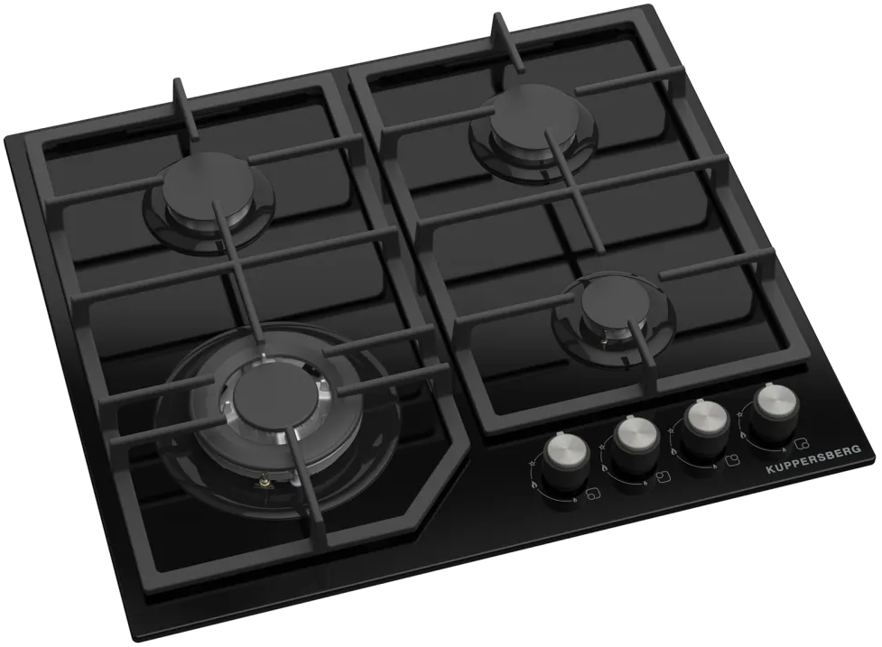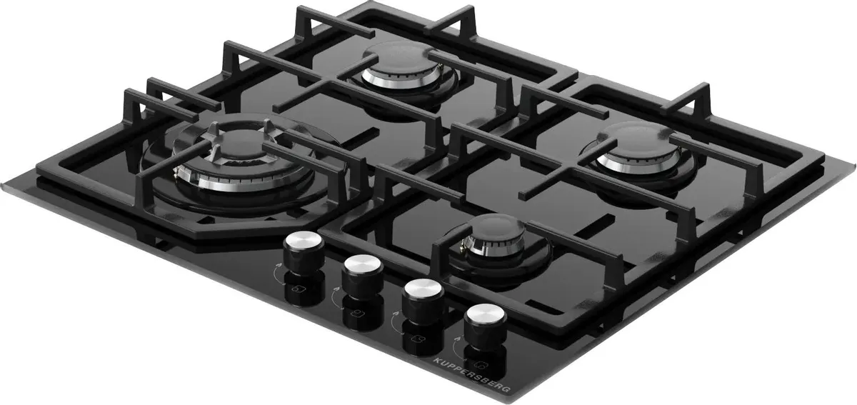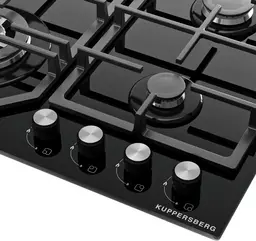 Варочная поверхность Kuppersberg/ Варочная поверхность Kuppersberg, газовая, High-Tech, 61 см, автоматический электроподжиг, газ-контроль, механическое управление, конфорки REMAY, цвет черный, цвет фурнитуры черный/нержавеющая сталь