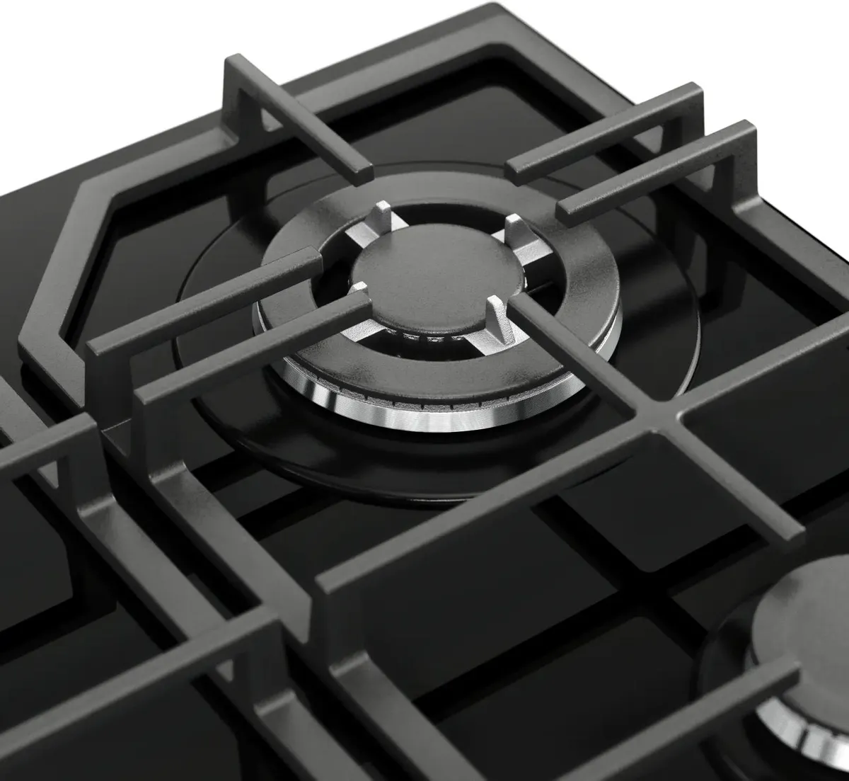 Панель включает одну конфорку типа WOK, которая обеспечивает интенсивный нагрев и идеально подходит для быстрого приготовления в глубокой посуде. Стеклянная поверхность из закалённого стекла придает модели современный вид и облегчает уход — достаточно протереть влажной тряпкой. Чугунные решетки прочные и устойчивы, выдерживают тяжелую посуду.