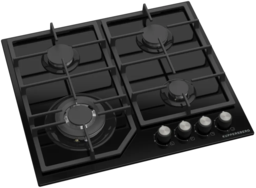 Панель оснащена механическими поворотными переключателями, которые просты и надежны в использовании. Автоматический электроподжиг активируется нажатием и поворотом рукоятки, мгновенно воспламеняя горелку. Для безопасности предусмотрена функция газ-контроля, которая автоматически отключает подачу газа при гашении пламени — это обеспечивает спокойствие при эксплуатации.