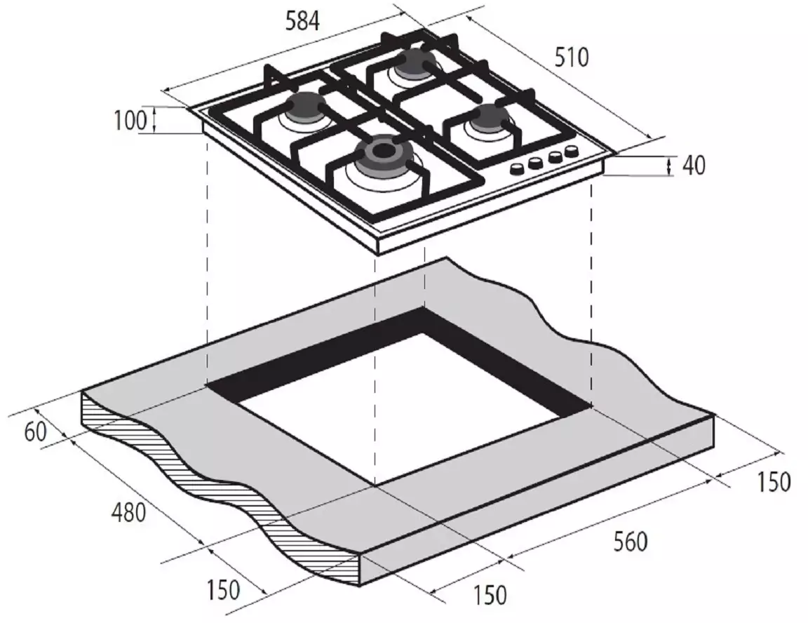 • Размеры для встраивания 560x480x30мм