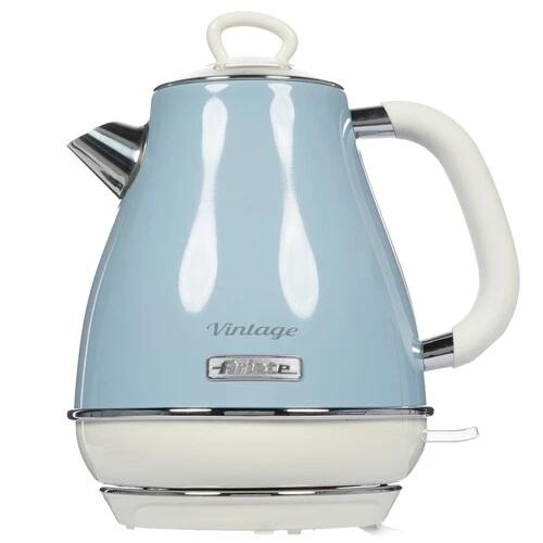 Электрочайник Ariete 2869/05 Vintage [пластик, 1.7 л, 2000 Вт, фильтр, скрытый нагревательный элемент, голубой, серебристый]