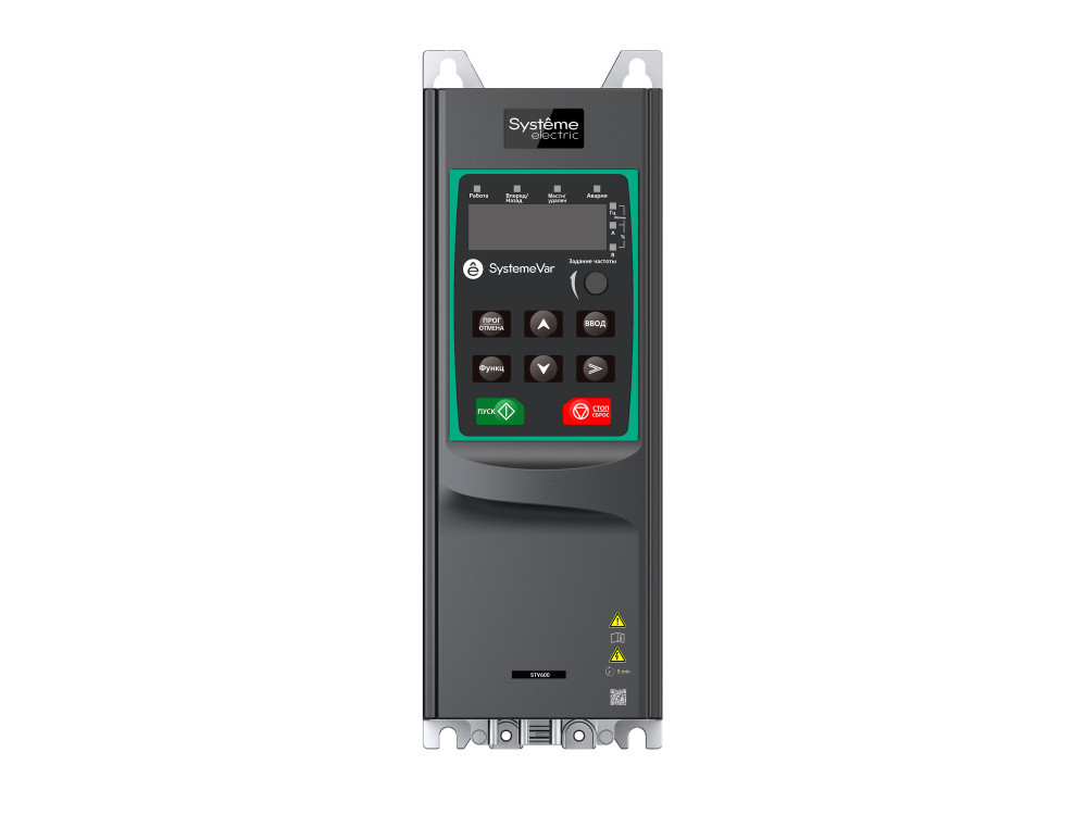 Преобразователь частоты серии SystemeVar, типа STV600 для насосных и вентиляторных применений. Номинальные характеристики (P-тип): Un = 3Ф 400В; Pn = 7,5 кВт; In = 17 А. Диапазон питающего напряжения: 3Ф 380В (-15%) ~ 440В (+10%). Номинальная мощность: 7,5 кВт (P-тип: 110% в течение 60с. Номинальный ток: 17 А (P-тип). Выходная частота: до 400 Гц. Без встроенного ЭМС-фильтра. Без встроенного DC-реактора. Без встроенного моторного дросселя. Панель оператора: LED интегрированная, несъёмная (опционально доступны: выносная LED (SEOP-1203) и выносная LCD (SEOP-1205) панели оператора). Интерфейс расширения функциональности: 2 слота (SLOT1, SLOT2). Встроенный протокол связи: Modbus RTU (опционально доступны: PROFIBUS DP (SEOP-1301), PROFINET (SEOP-1302), CAN/CANopen (SEOP-1307). Кол-во входов/выходов: 6DI, 2AI, 1DO, 2AO, 1RO* (опционально доступны: плата расширения входов/выходов: SEOP-1628 (+ 4DI, 1AI, 1DO, 2RO), плата расширения релейных входов/выходов SEOP-1630 (+2DI, 6RO). Примечание “1RO*” – 2RO только для STV600, произведённых после 15 марта 2023 года (они имеют круглую дополнительную маркировку на упаковке “QCPASS”). Поддерживает ПО для ввода в эксплуатацию и диагностики (SystemeVAR Studio). Степень защиты IP20. Скалярное и векторное (без датчика обратной связи) управление. Функции для насосных и вентиляторных применений. Пожарный режим. Монтаж: настенный, фланцевый. Тип монтажа: встраиваемый (подразумевается установка в оболочку (шкаф управления). Конформное покрытие печатных плат (Класс 3С3, согл. EN 60721-3-3). Температура окружающей среды: от -10°C до +50°C (до +40°C без ухудшения номинальных характеристик). Охлаждение: принудительное. Габаритные размеры (ШхВхГ), мм: 89х259х211,5. Вес: 2,4 кг.
