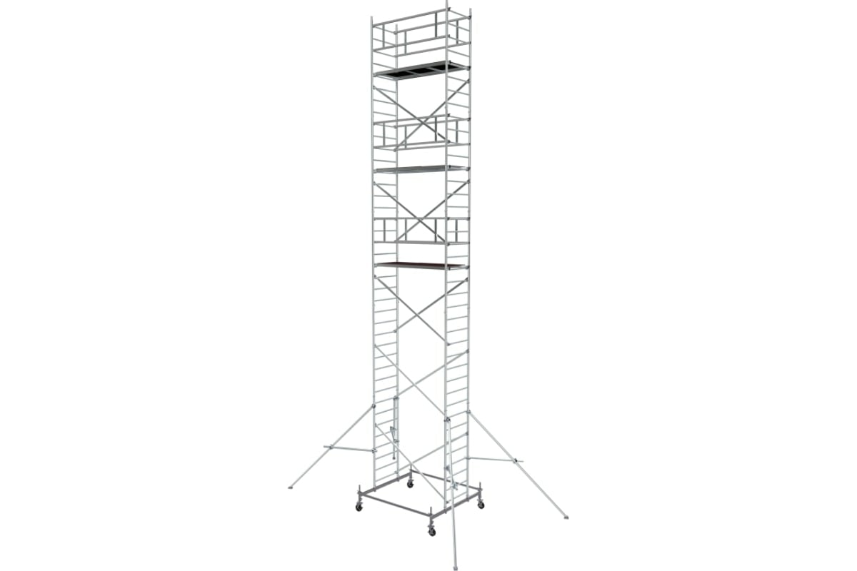 Модульная алюминиевая вышка MEGAL ВМА 700/11 100711 служит для подъема и организации рабочего места на высоте при выполнении строительно-монтажных, ремонтных и прочих работ.