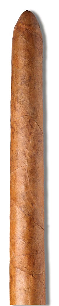This large, imposing figurado has a notably firm draw, yet imparts sophisticated notes of honey and caramel that segue into a rich, coffee-bean character.