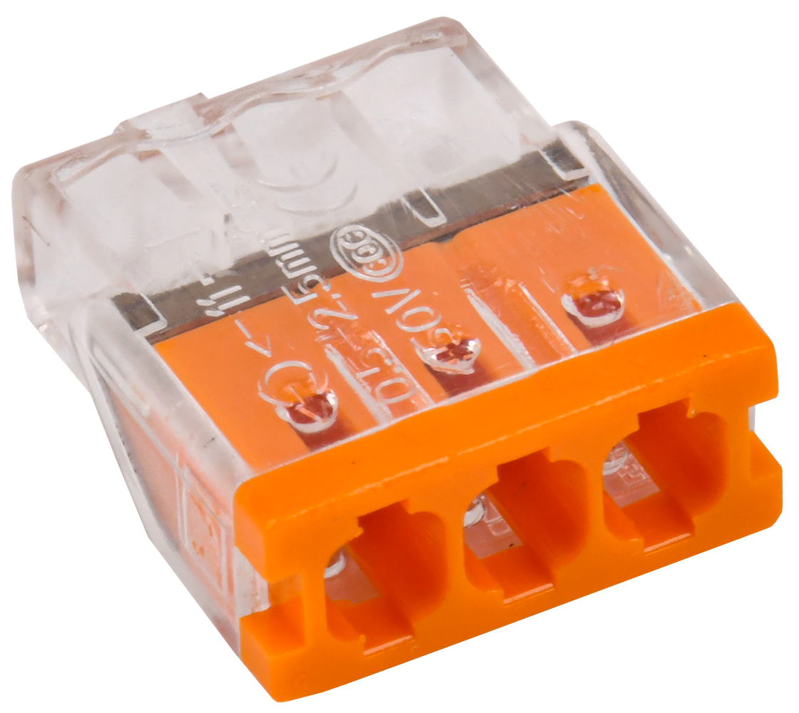 Строительно-монтажная клемма серии 772 в прозрачном корпусе, без контактной пасты, предназначена для однократного подключения одножильных/ многожильных медных проводников.