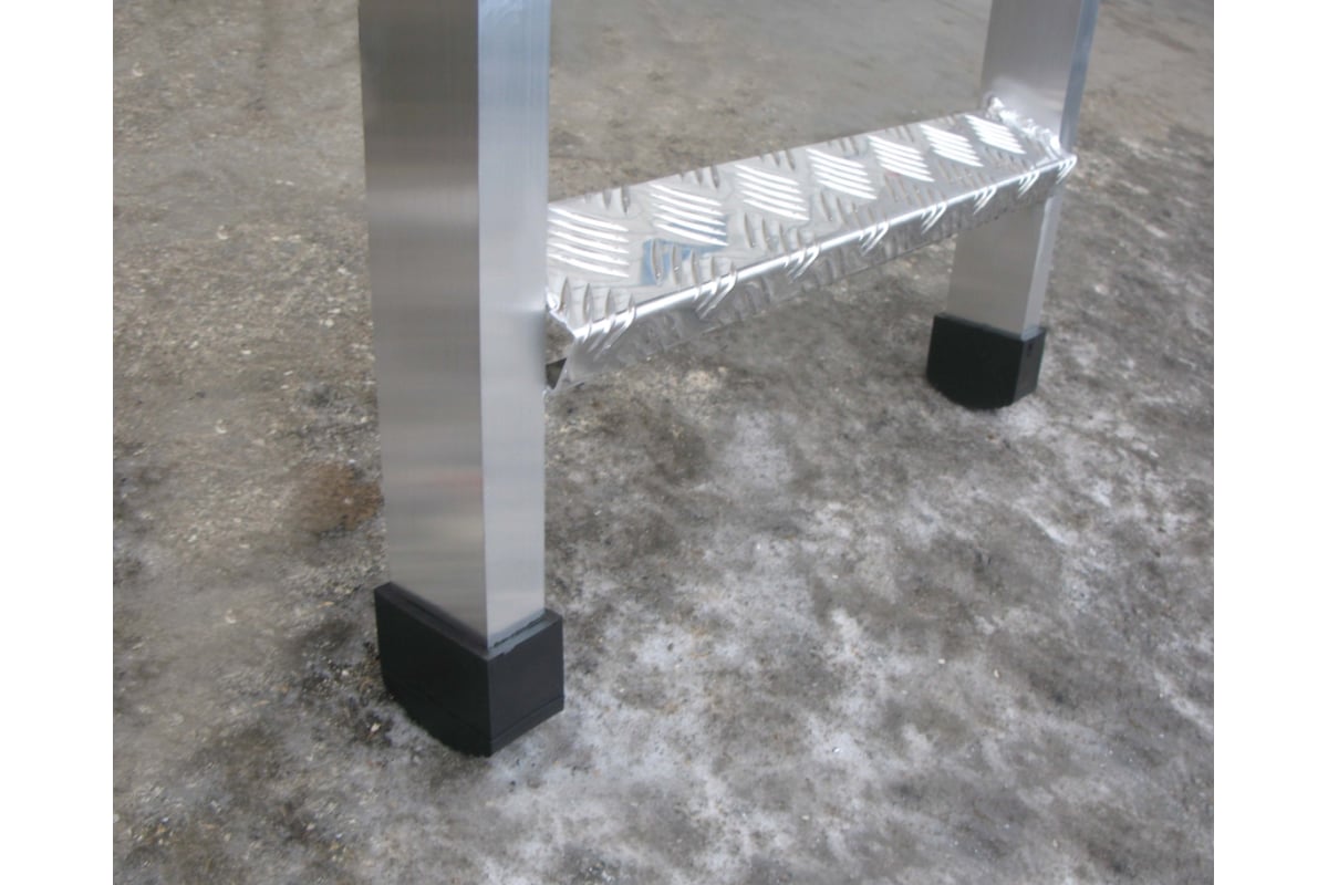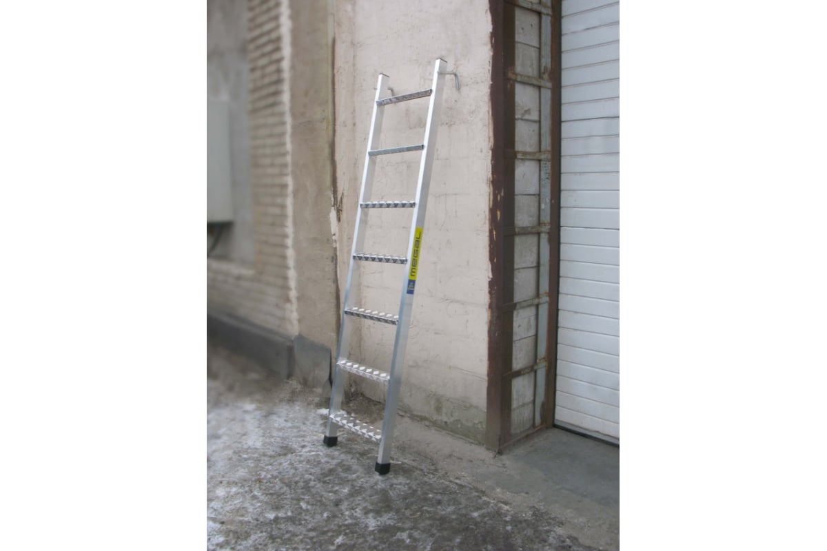 Удобные ступени из рифленого листа квинтет обеспечивают комфортный подъем и спуск. Для безопасности снизу модель оснащена резиновыми противоскользящими башмаками.