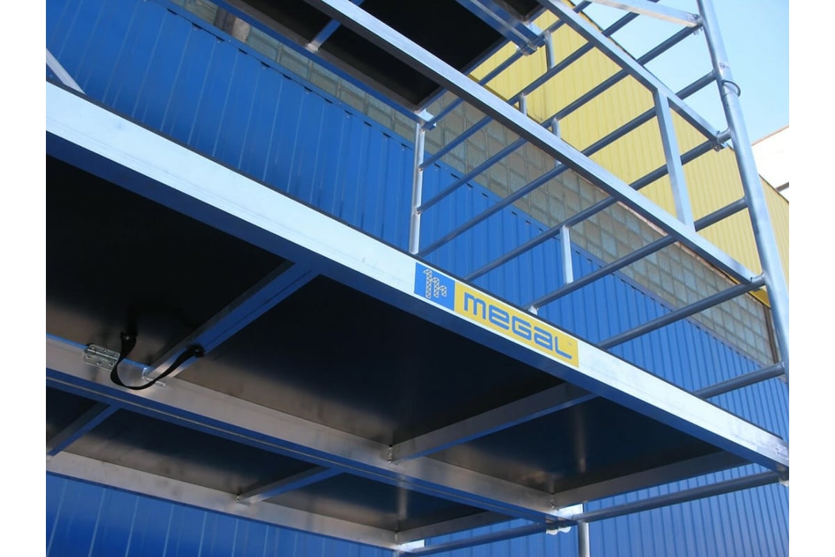 Модульная алюминиевая вышка MEGAL ВМА 1400/7 101407 обеспечивает подъем и организацию рабочего места на высоте с использованием лестничных маршей в строительно-монтажных, ремонтных и прочих работах.