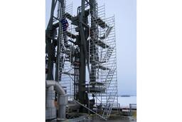 Вышка собирается из вертикальных рам. Рамы стыкуются между собой и фиксируются крепежными скобами. Площадки соединяются наклонными лестничными маршами с рифлеными широкими ступенями. Каждый марш оснащен перилами ограждениями. Используются диагональные и горизонтальные связи (стяжки).