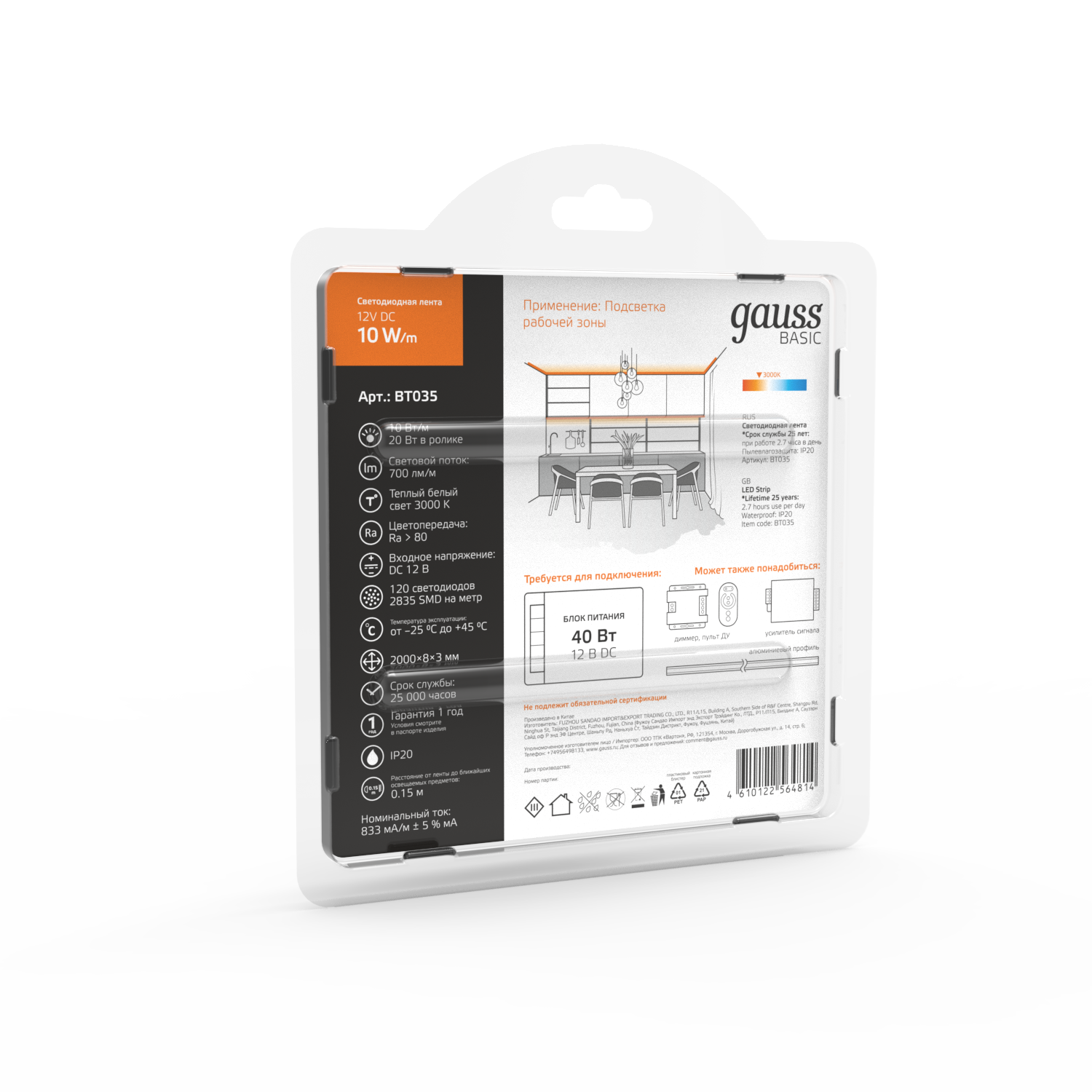 Светодиодная лента GAUSS Basic BT035 10Вт, 2м