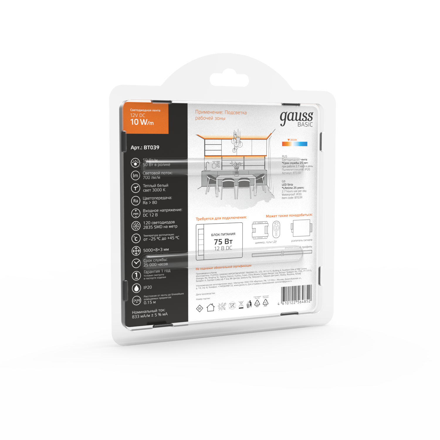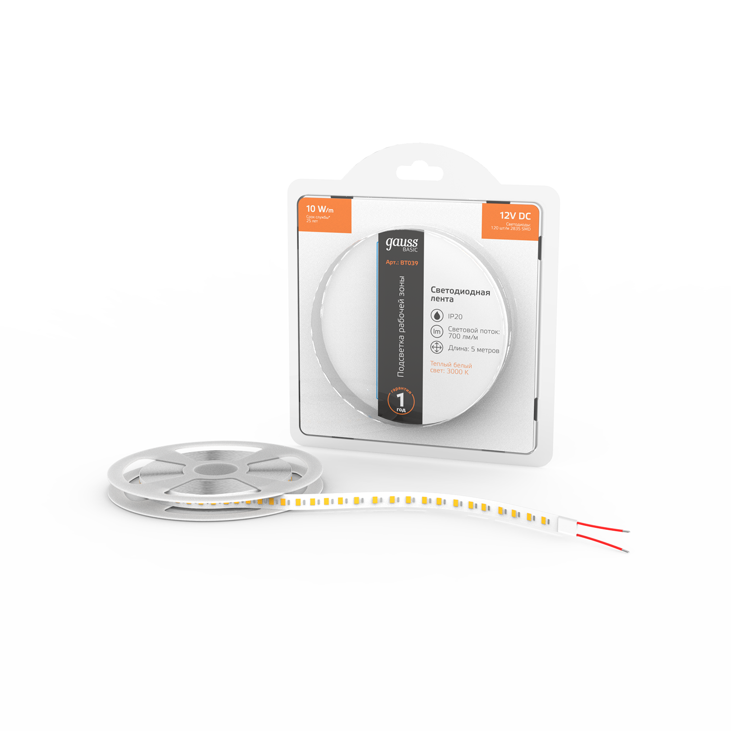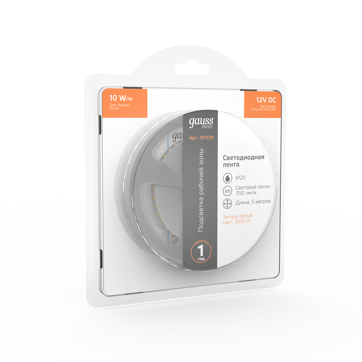Светодиодная лента GAUSS Basic BT039 50Вт, 5м
