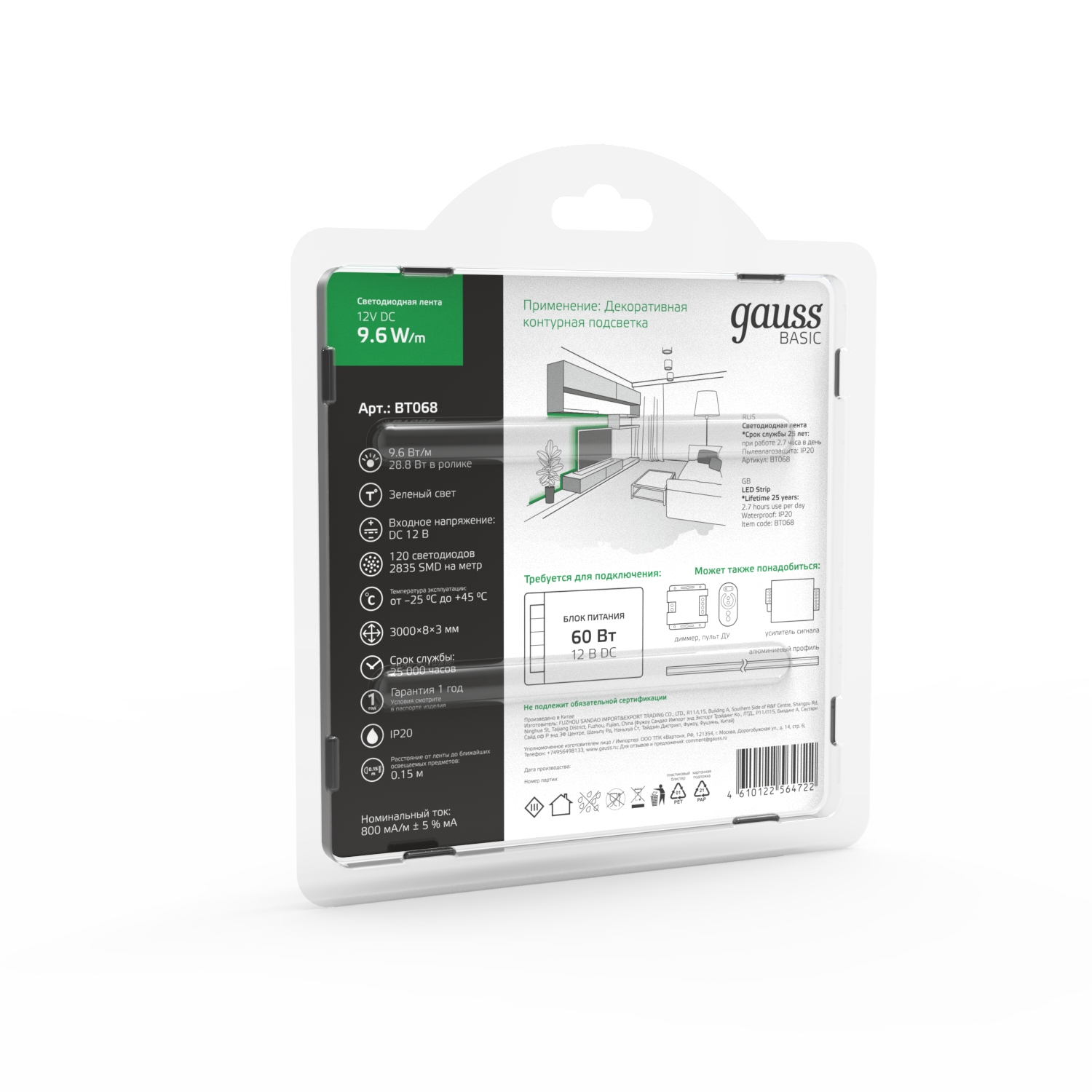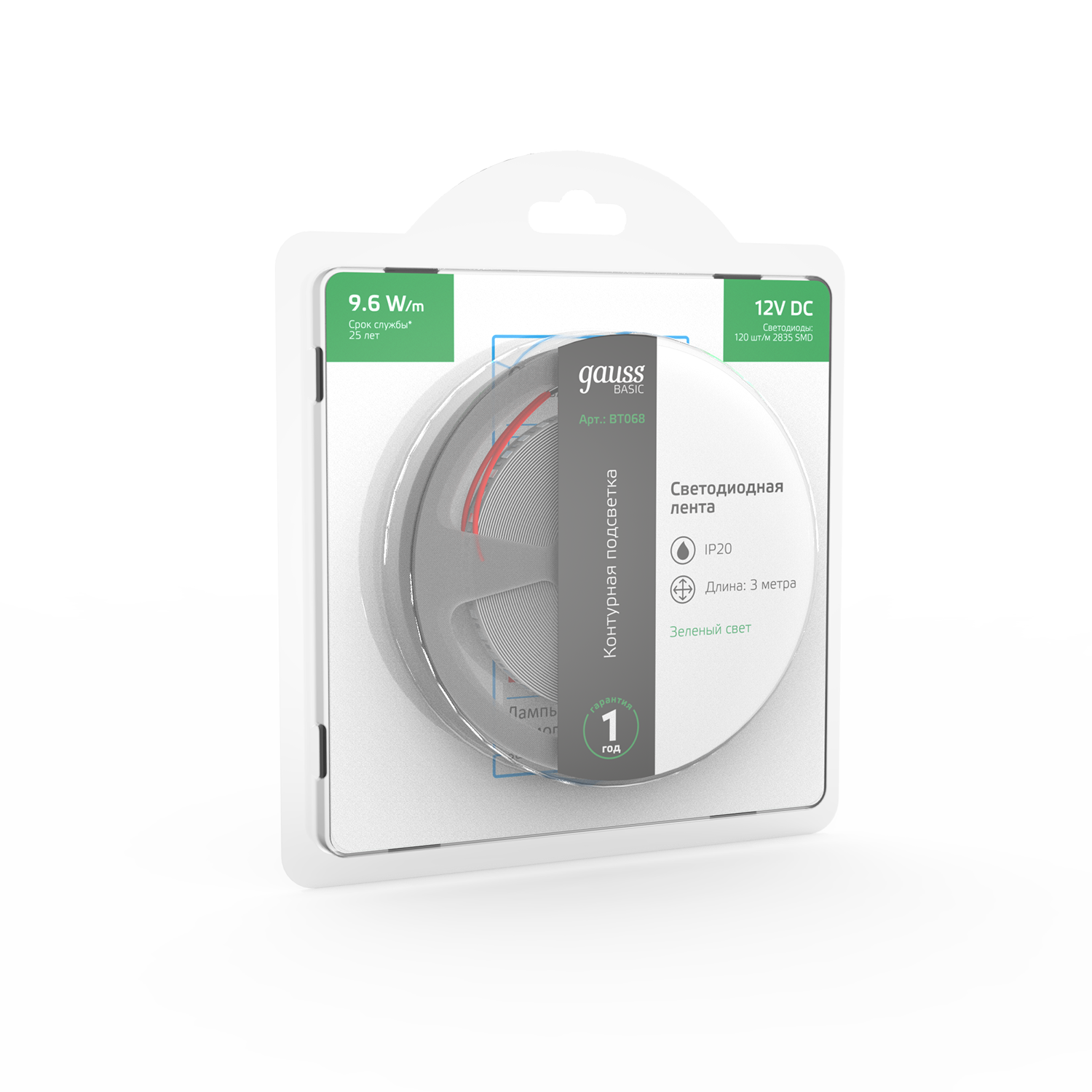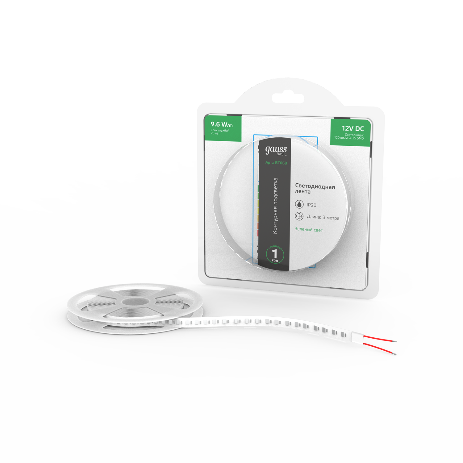 Светодиодная лента GAUSS Basic BT068 9.6Вт, 3м