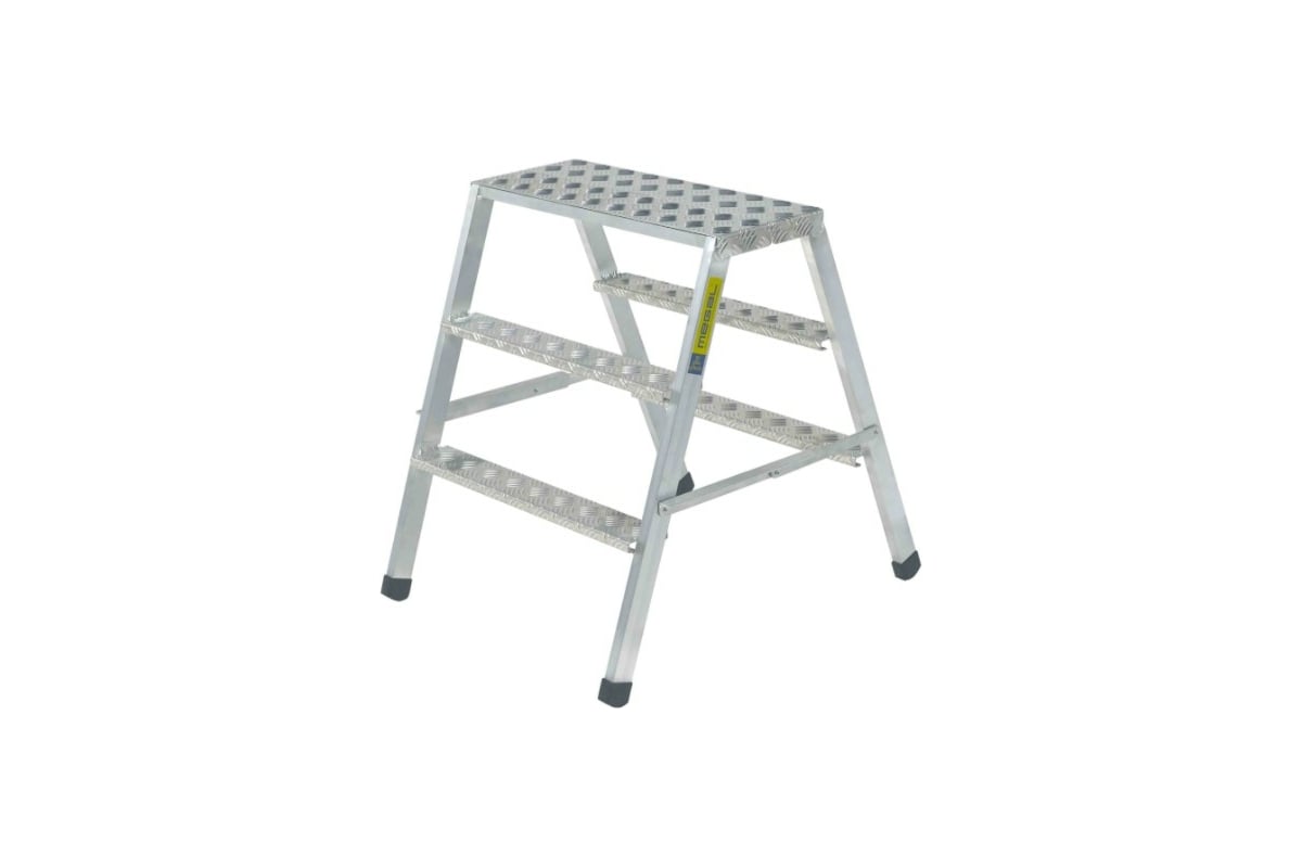 Надежные, практичные, быстро раскладывающиеся рабочие подмости с двухсторонним подъемом. Большие ступени глубиной 85 мм из рифленого алюминиевого листа для безопасного подъема и удобства в работе. Допустимая нагрузка не более 120 кг.