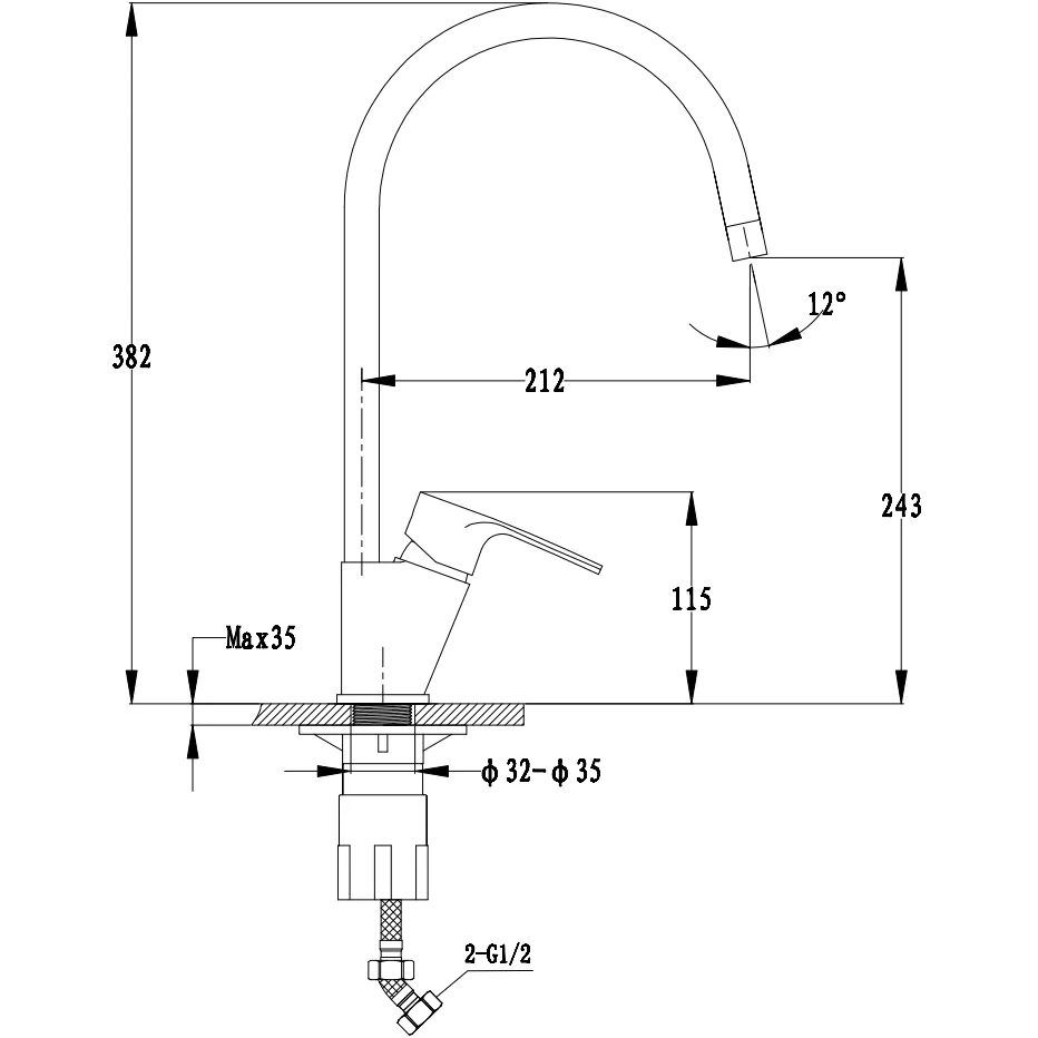 • Высота излива 243 мм