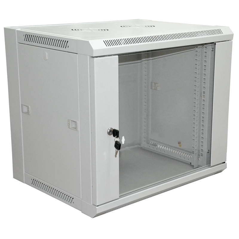 Настенный шкаф Rexant, односекционный, разобранный. Поставляются в удобном для транспортировки гофрокартонном ящике (одно место). Двери оснащены замком и имеют разные варианты исполнения, металлическими или из тонированного ударопрочного стекла. Дверца может быть установлена для открытия в левую и правую сторону.Боковые стенки - съемные, укомплектованы защелками, это обеспечивает легкий и удобный доступ к установленному в шкаф оборудованию. С задней стороны крыши и основания расположены 2 кабельных ввода. Для монтажа 19" оборудования используются пара вертикальных металлических профилей. В стандартную комплектацию входят два уголка для поддержки оборудования. На задней стенке шкафа есть отверстия для крепления к стене. Покрытие - порошковая окраска с предварительным фосфатированием. Степень пылевлагозащищенности IP20. Гарантия 5 лет.Конструктивные характеристики:Поставляются в разобранном виде, в удобном для транспортировки гофрокартонном ящике - (1 место);Ширина шкафа - 570 мм;Глубина шкафа - 450 мм;Высота шкафа - 370 мм;Полезная глубина - 365 мм;Цвет стандарта Ral7035;Максимальная нагрузка до 90 кг;Степень защиты IP20;Радиус открытия двери 220º;Каркас изготовлен из листовой стали толщиной 1,5 мм;Передняя дверь из тонированного ударопрочного стекла 5 мм в металлической раме оснащена замком;Дверца может быть установлена для открытия в левую и правую сторону;Боковые панели съемные на защелках;Одна пара вертикальных 19” направляющих;Крышка оборудована съемными панелями для установки вентиляторного модуля;Дно и крышка оборудованы съемными панелями для ввода кабелей.Особенности:Шкафы соответствуют международным стандартам ANSI/EIA RS-310-D, IEC297-2, DIN41494, ГОСТ 14254;Хорошая естественная вентиляция и возможность установки вентиляторного модуля в крыше;Предусмотрены заземляющие соединения на корпусе, дверях и панелях;Монтажные профили имеют разметку в юнитах (U);Эргономичный дизайн и эстетичный внешний вид;Доступ к оборудованию с трех сторон;Время сборки одним человеком - 10 минут;Поставляется в разобранном виде;Очень компактная упаковка;Гарантия 5 лет.