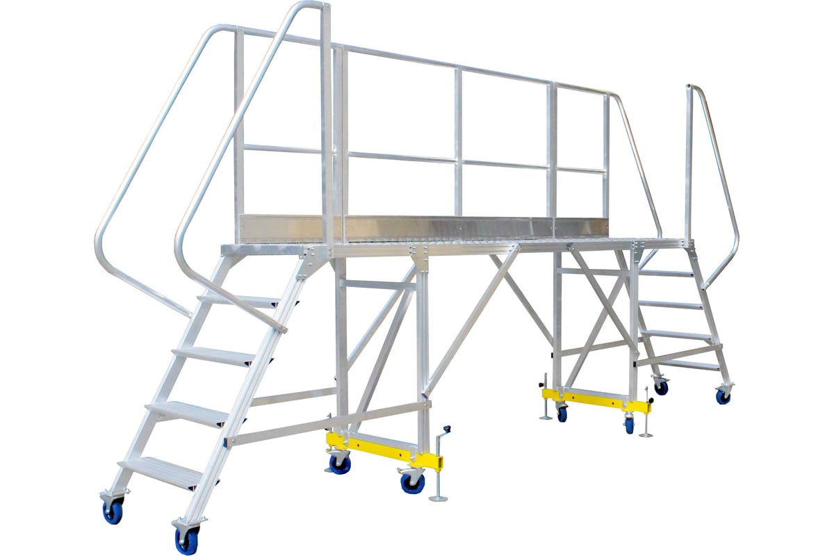 Удобная рабочая площадка из рифленого листового алюминия с ограждениями - безопасная работа