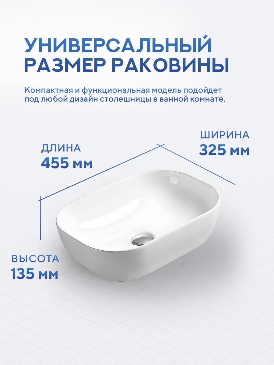 Умывальник накладной Amore di Mare Vivaro 45307-RR 45,5x32,5 белый