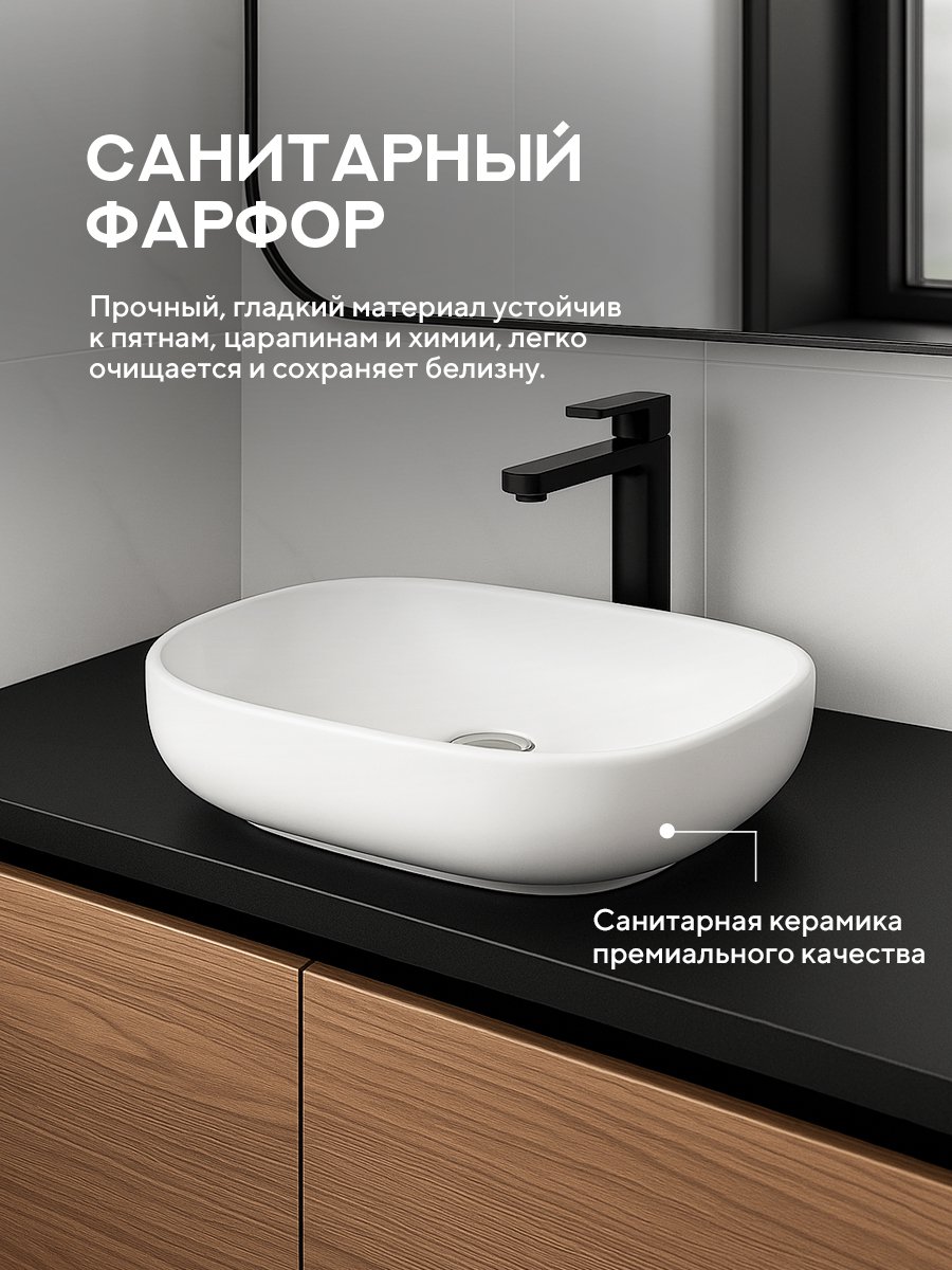 Фарфор, из которого изготовлены раковины, сохраняет свой привлекательный внешний вид даже при длительном использовании.