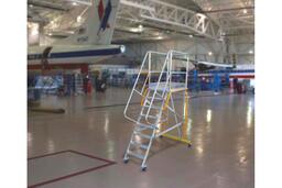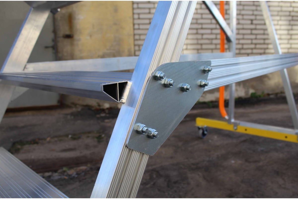 Для удобства перемещения по рабочей территории площадка оснащена поворотными колесами со стопорами.